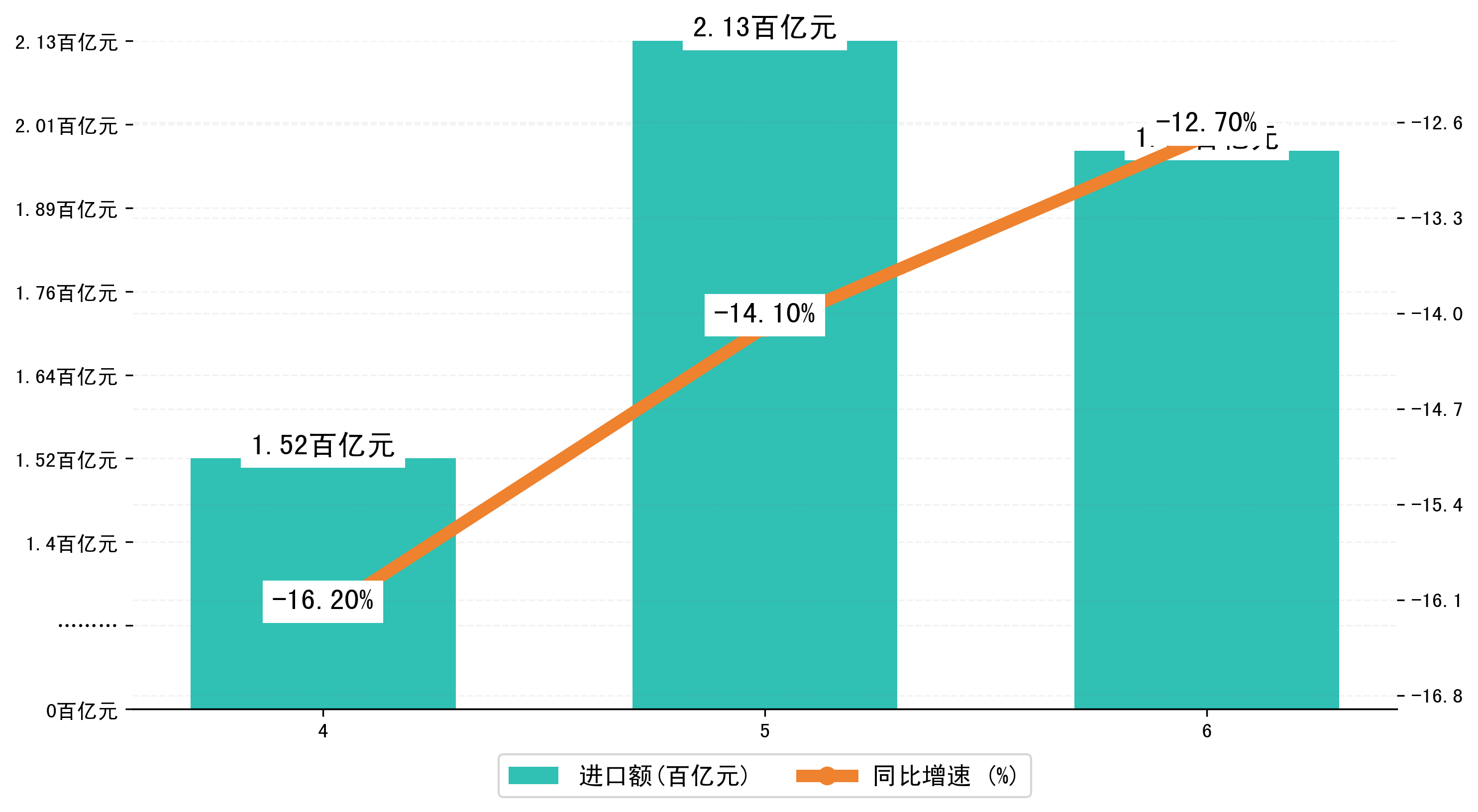 以人民币计,2025年6月河北省进口额为196,7775.5527万元,相比上月减少了15,9817.9169万元;相比上年同期减少了12,9272.0028万元,同比减少了-12.70%。