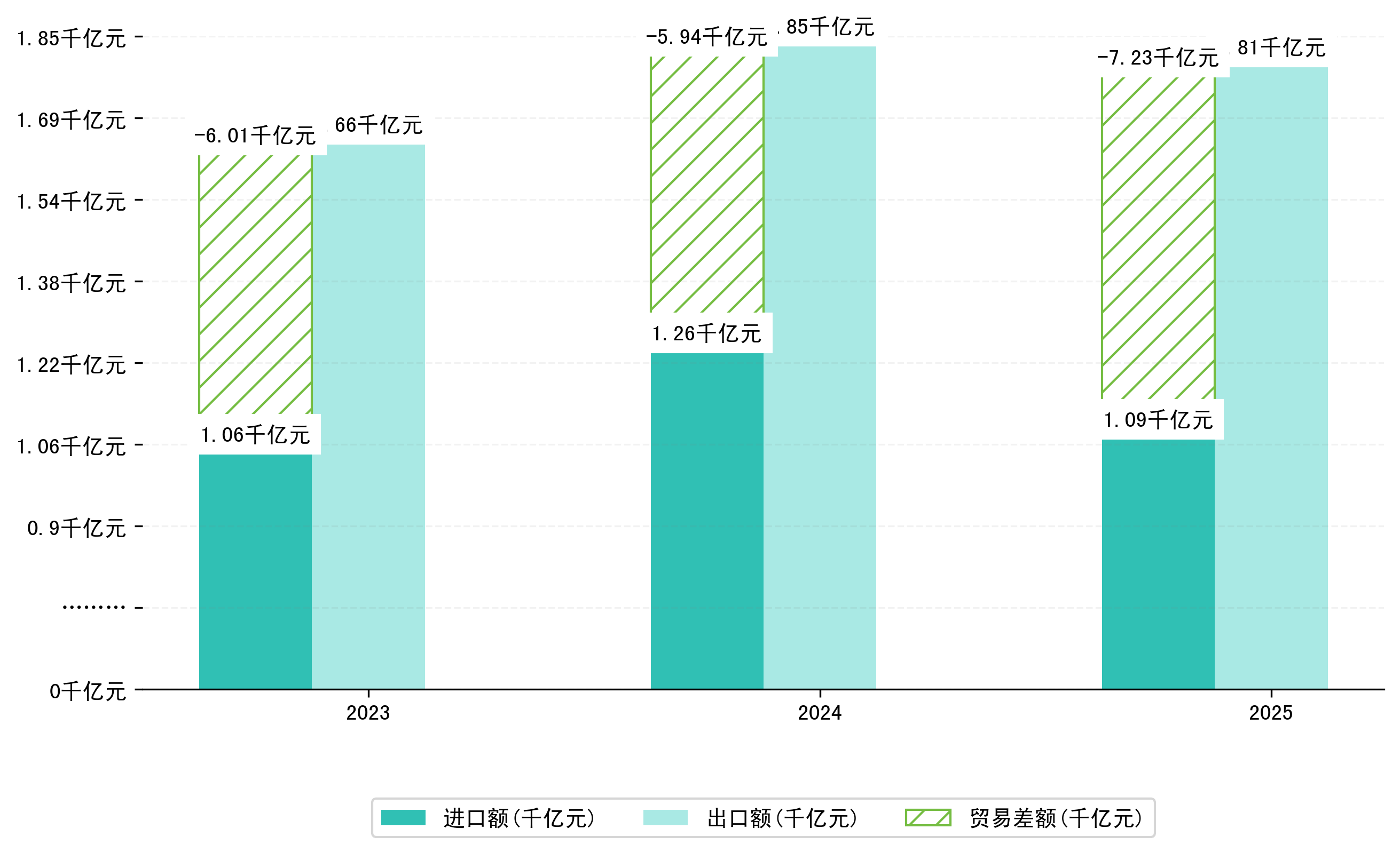 以人民币计,2025年1-6月河北省贸易差额为722,6552,5151万元(贸易顺差),相比上年同期增加了128,4630,8565万元,同比增加21.62%。