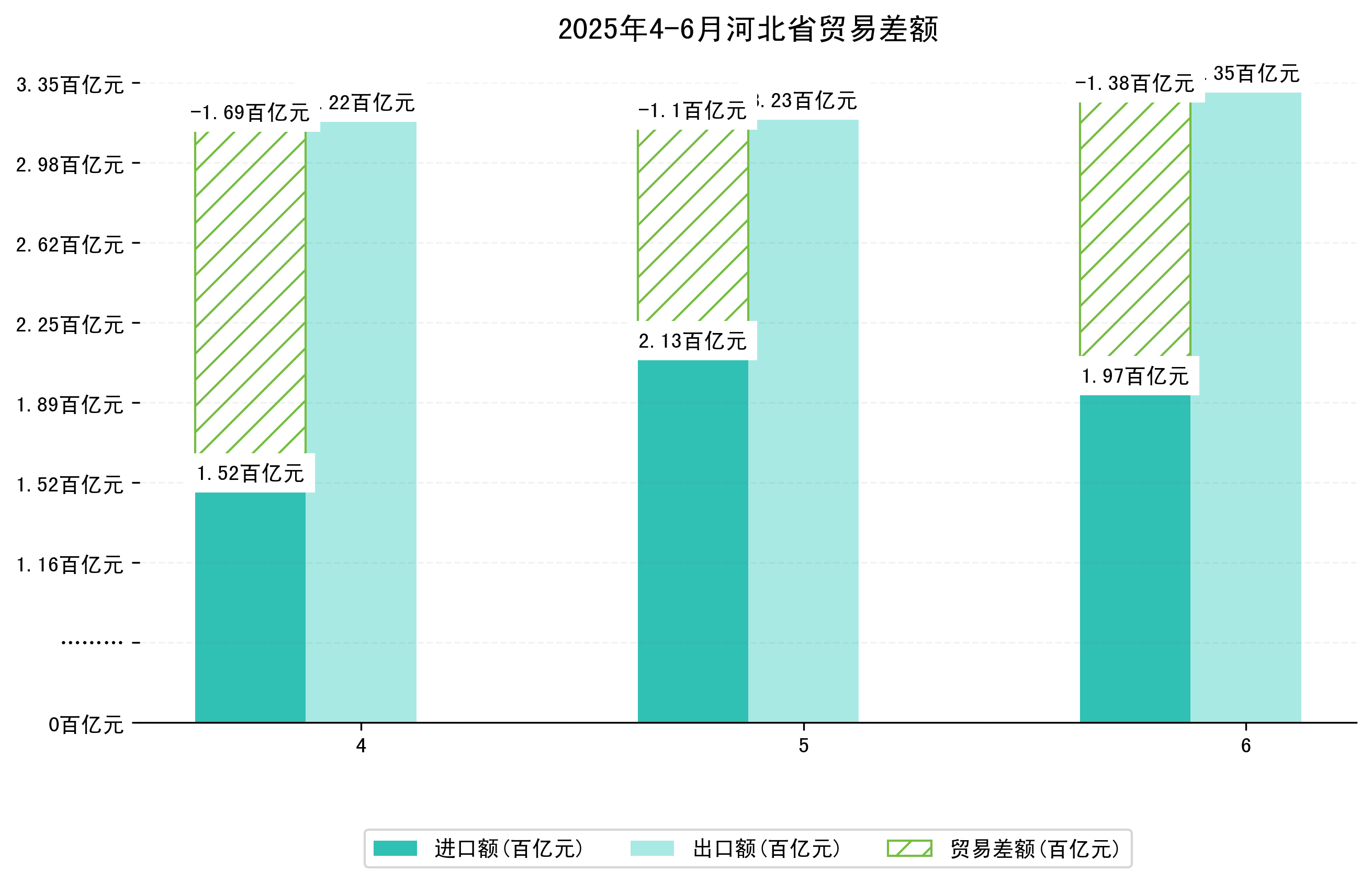 一、2025年6月河北省单月出口总额及进出口差额统计分析