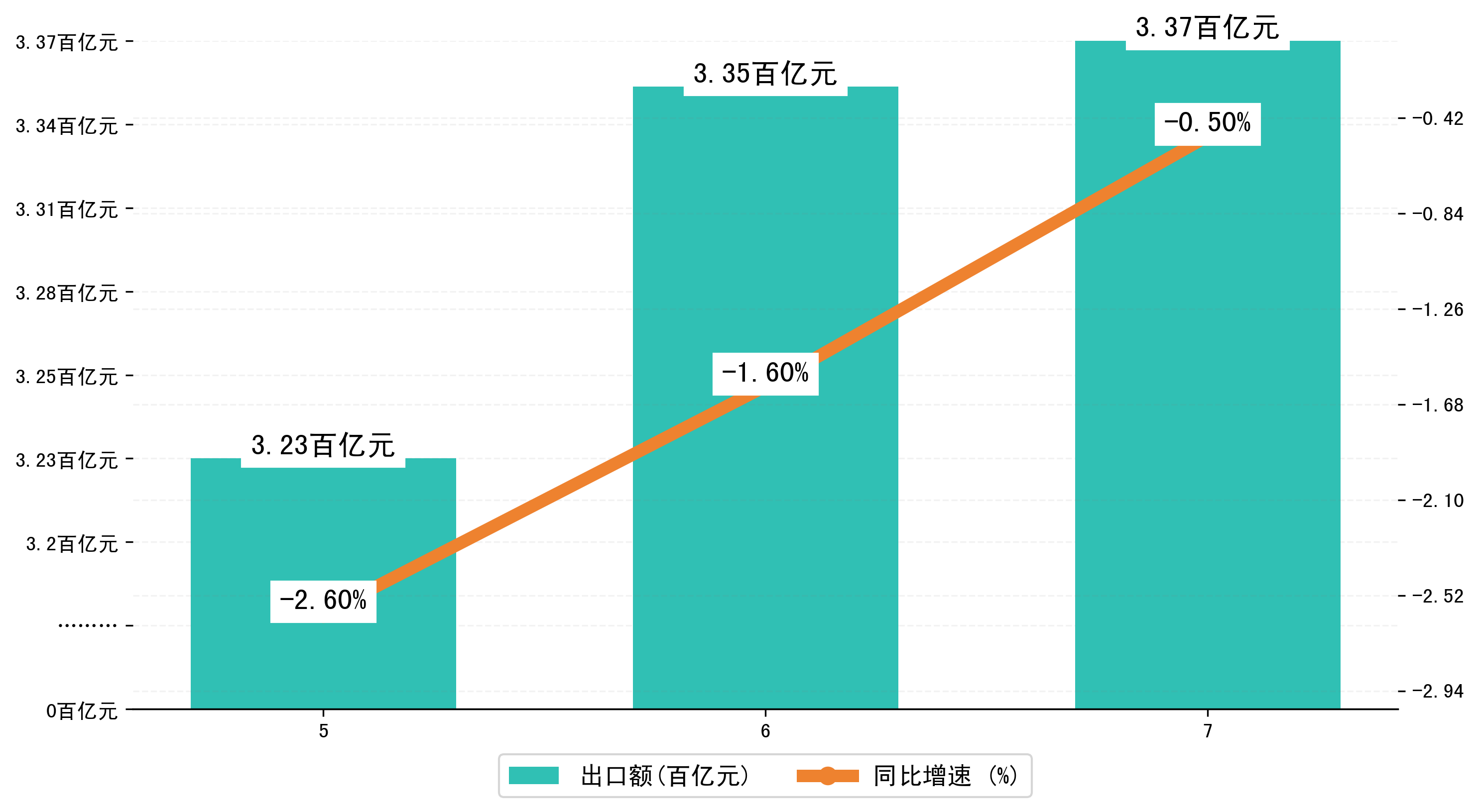 一、2025年7月河北省单月出口总额及进出口差额统计分析