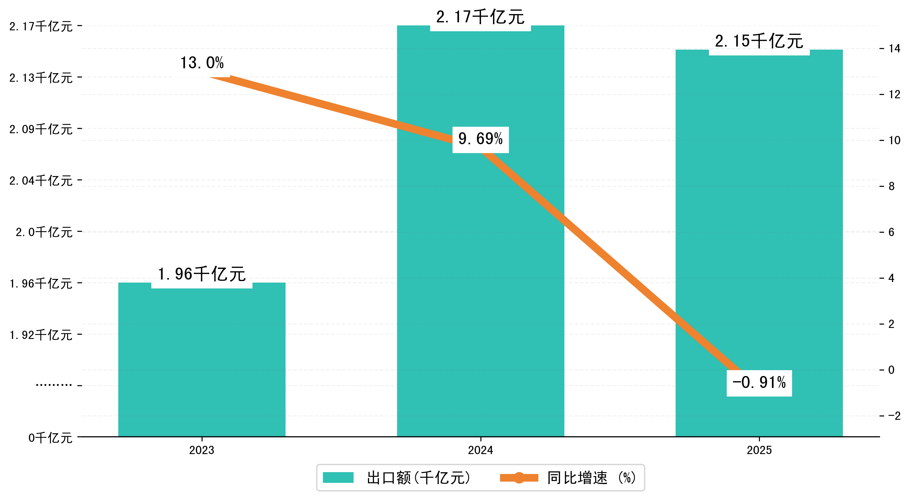 以人民币计,2025年1-7月河北省出口额为2149,3714.3774万元,相比上年同期减少了19,8220.8147万元,同比减少了-0.50%。
