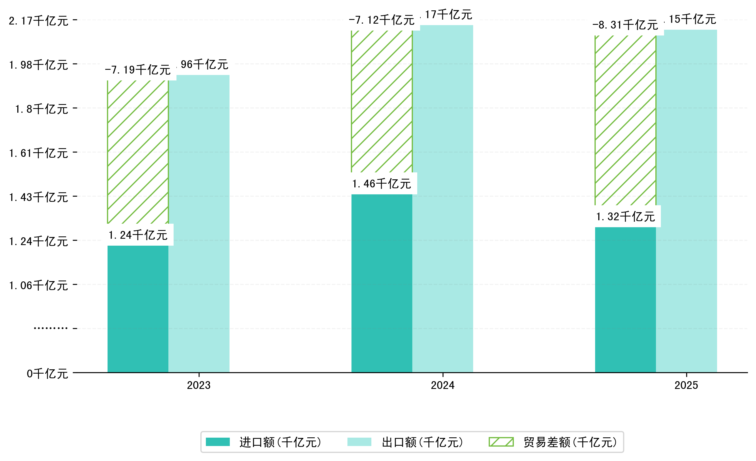 以人民币计,2025年1-7月河北省贸易差额为831,0566,5086万元(贸易顺差),相比上年同期增加了119,3007,1331万元,同比增加16.76%。