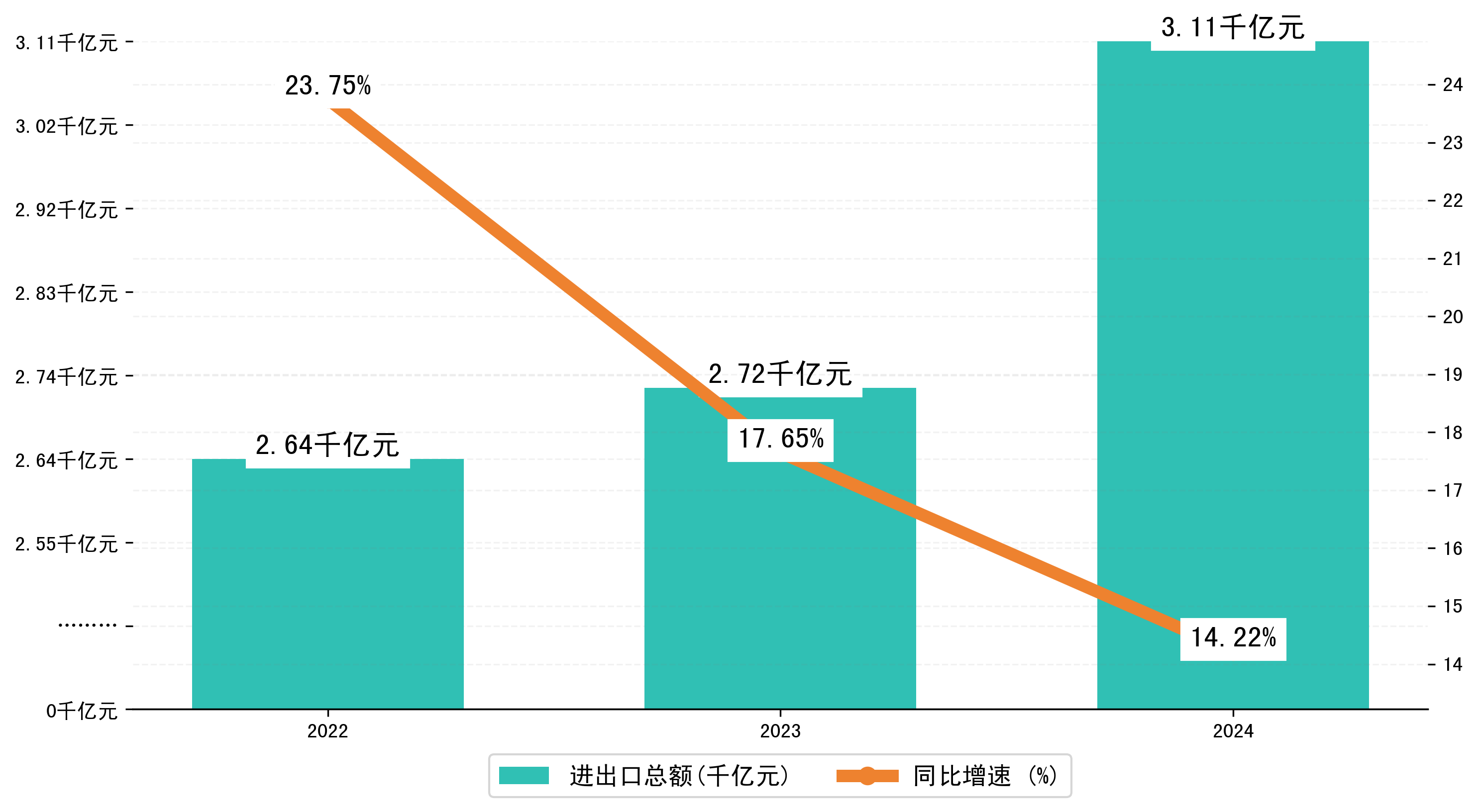 以人民币计,2024年1-6月河北省进口额为1258,3851.2323万元,相比上年同期增加了196,9022.5873万元,同比增加了19.10%。