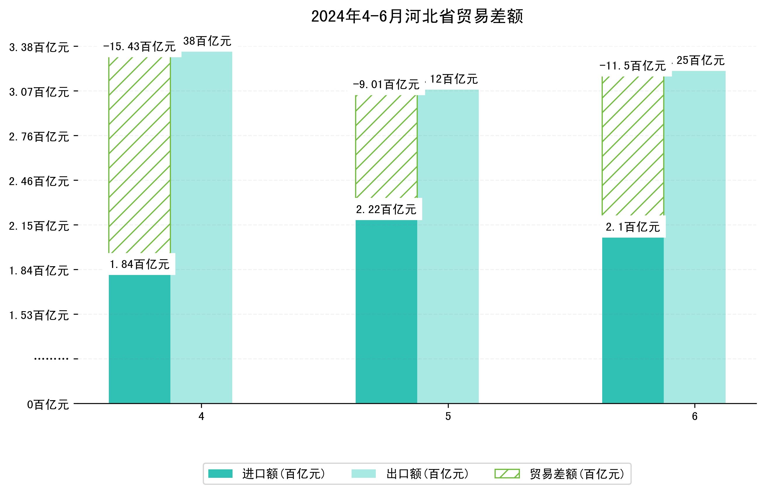 一、2024年6月河北省单月出口总额及进出口差额统计分析