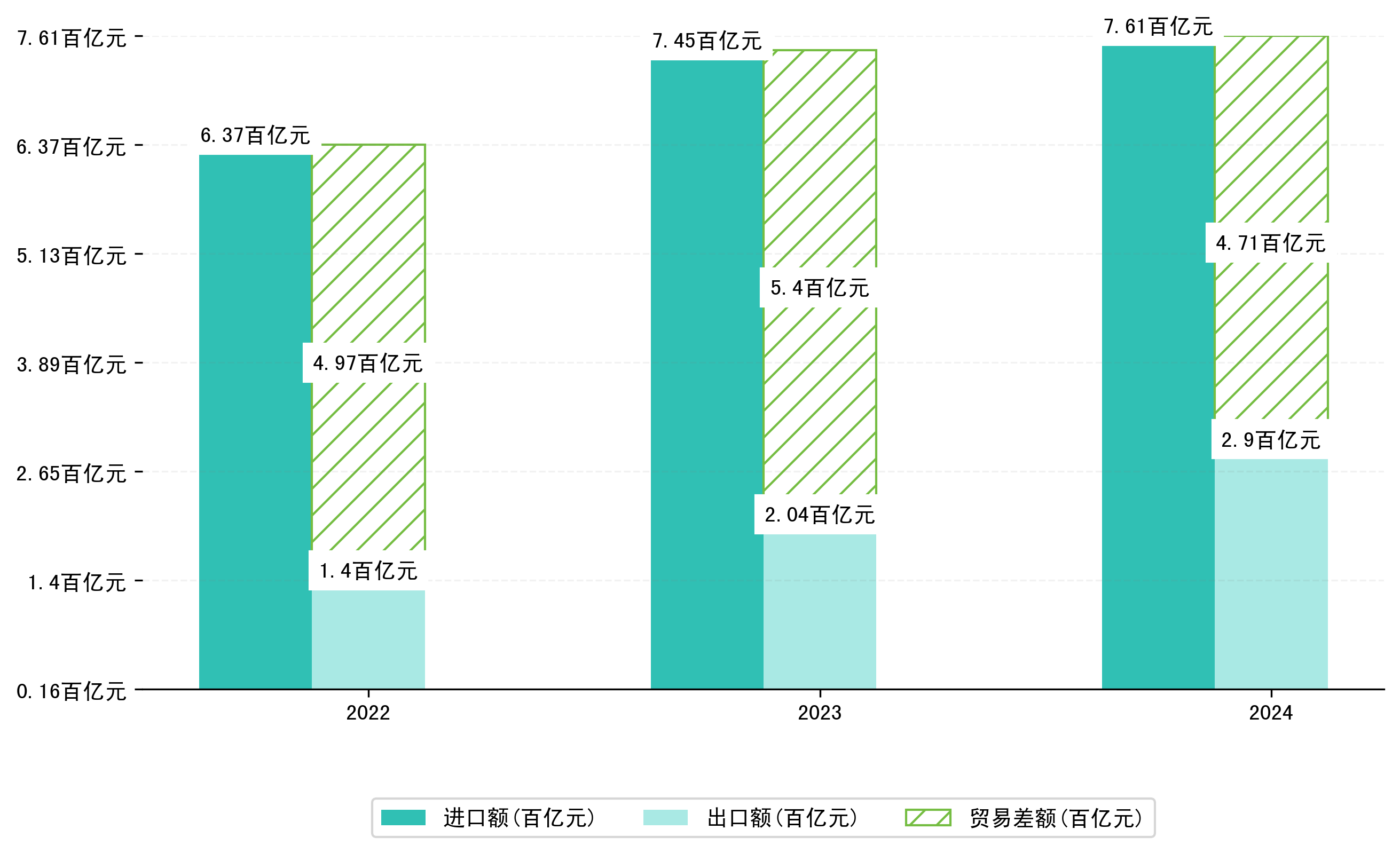 以人民币计,2024年1-4月黑龙江省进口额为761,2496.1317万元,相比上年同期增加了16,3922.0203万元,同比增加了1.90%。
