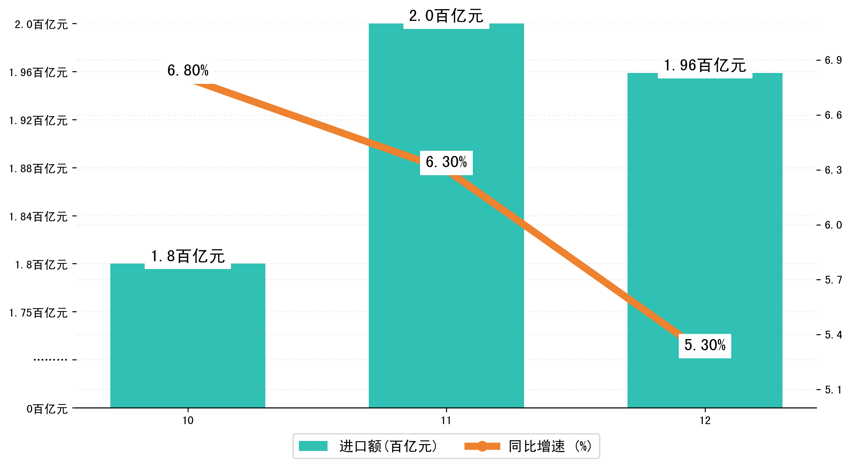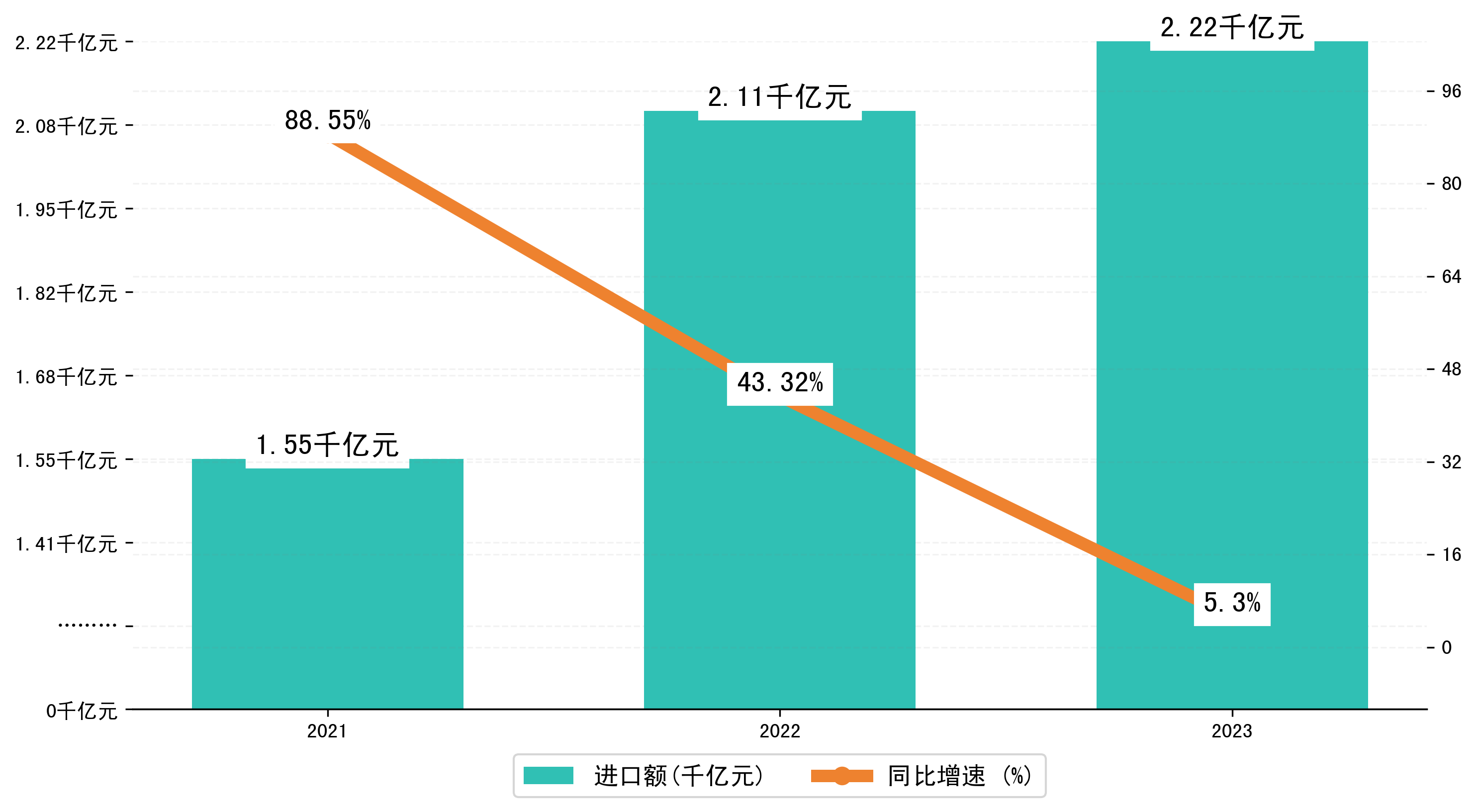 以人民币计,2023年1-12月黑龙江省进口额为2217,6561.7994万元,相比上年同期增加了111,6976.9648万元,同比增加了5.30%。