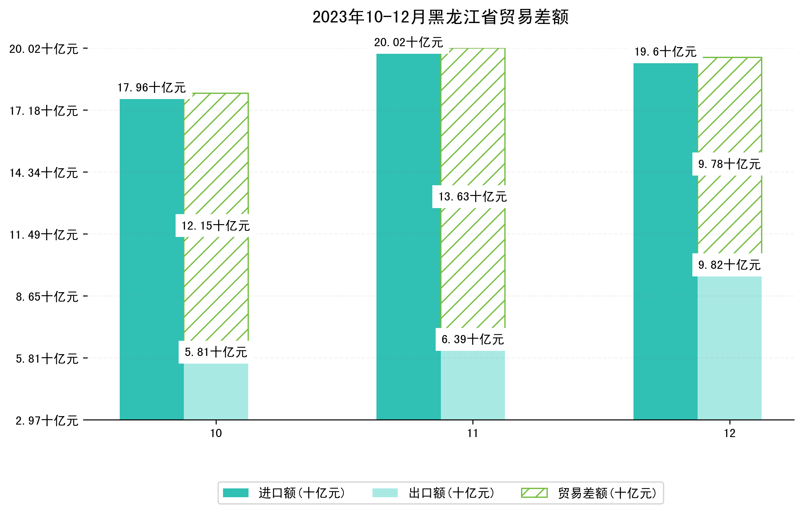 2023年12月黑龙江省进出口总额及进出口差额统计分析