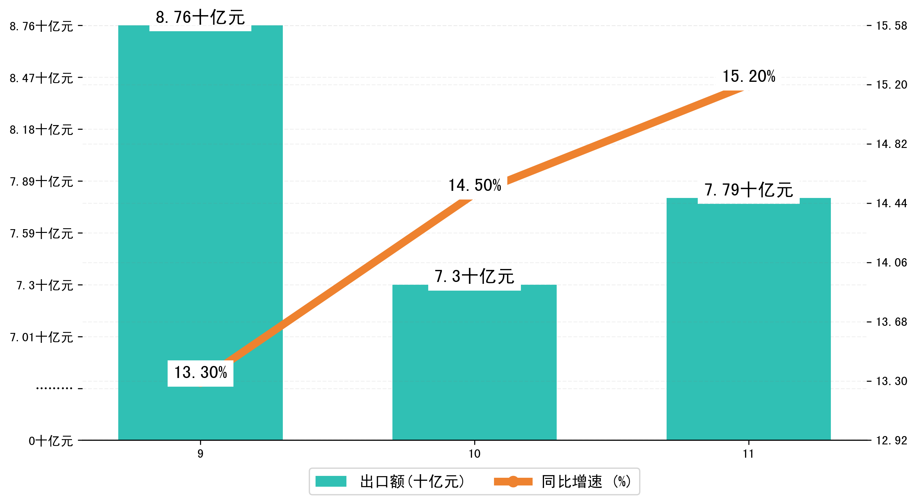 (图二:2024年9-11月黑龙江省出口额)