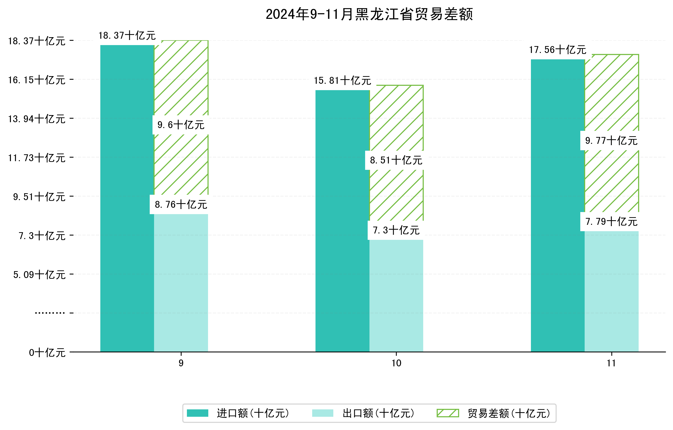 (图一:2024年9-11月黑龙江省进出口总额)