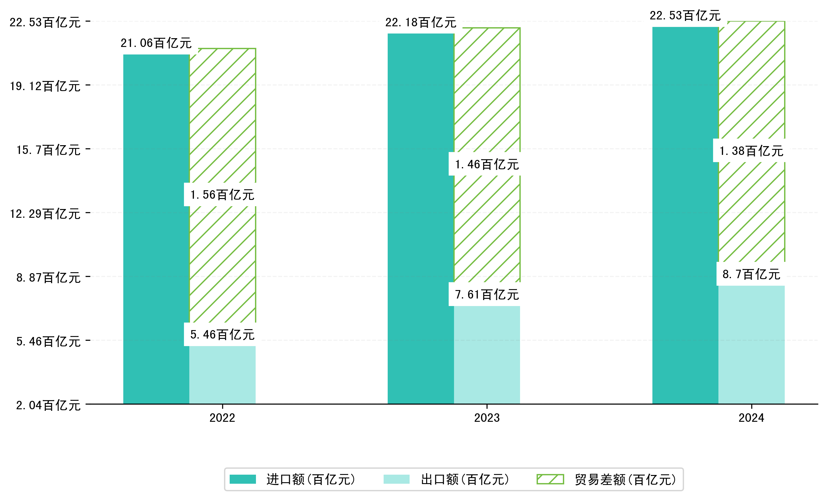 以美元计,2024年1-12月黑龙江省进口额为316,6358.6728万美元,相比上年同期增加了1,0126.3703万美元,同比增加0.20%。