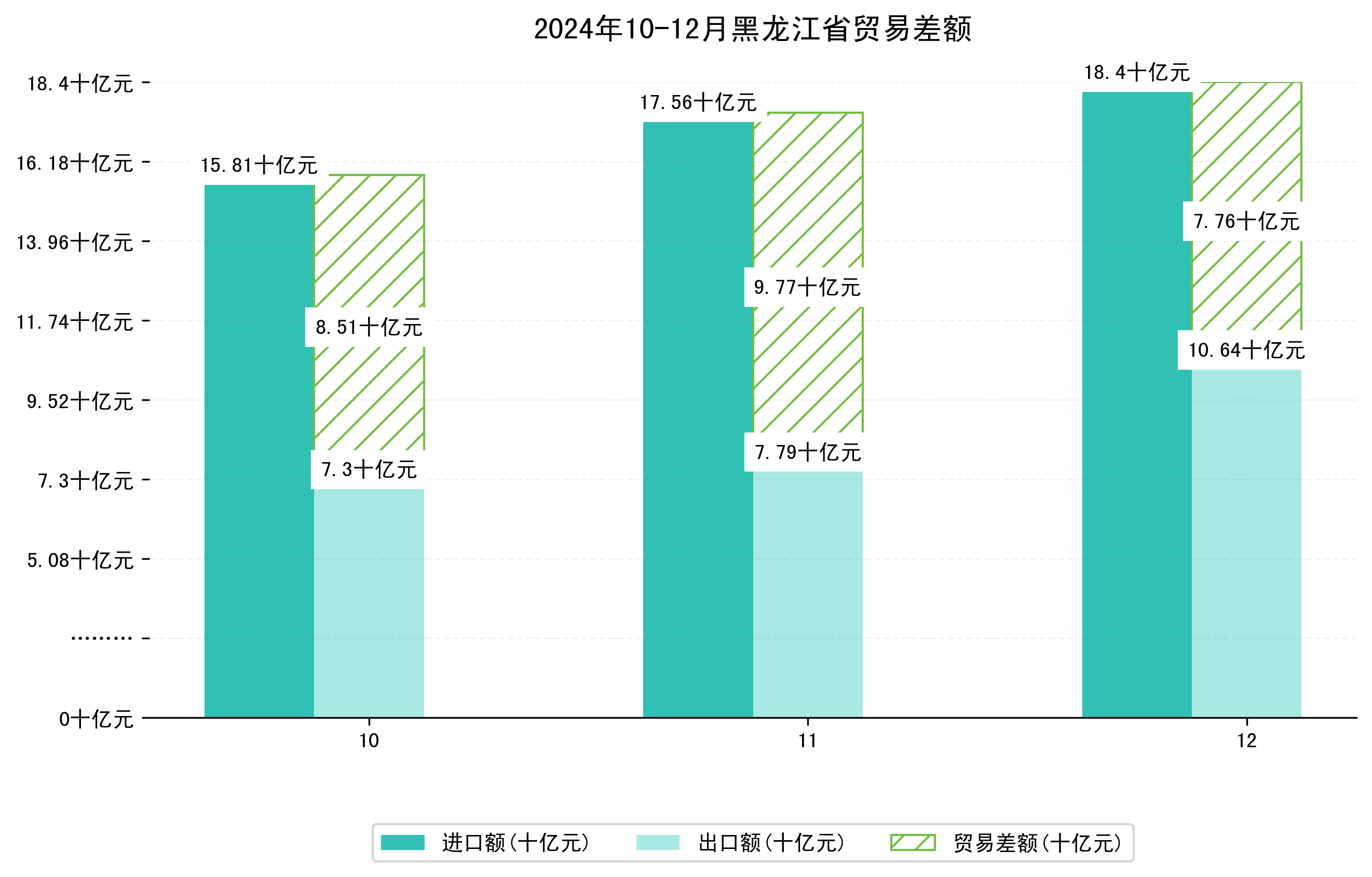2024年12月黑龙江省进出口总额及进出口差额统计分析