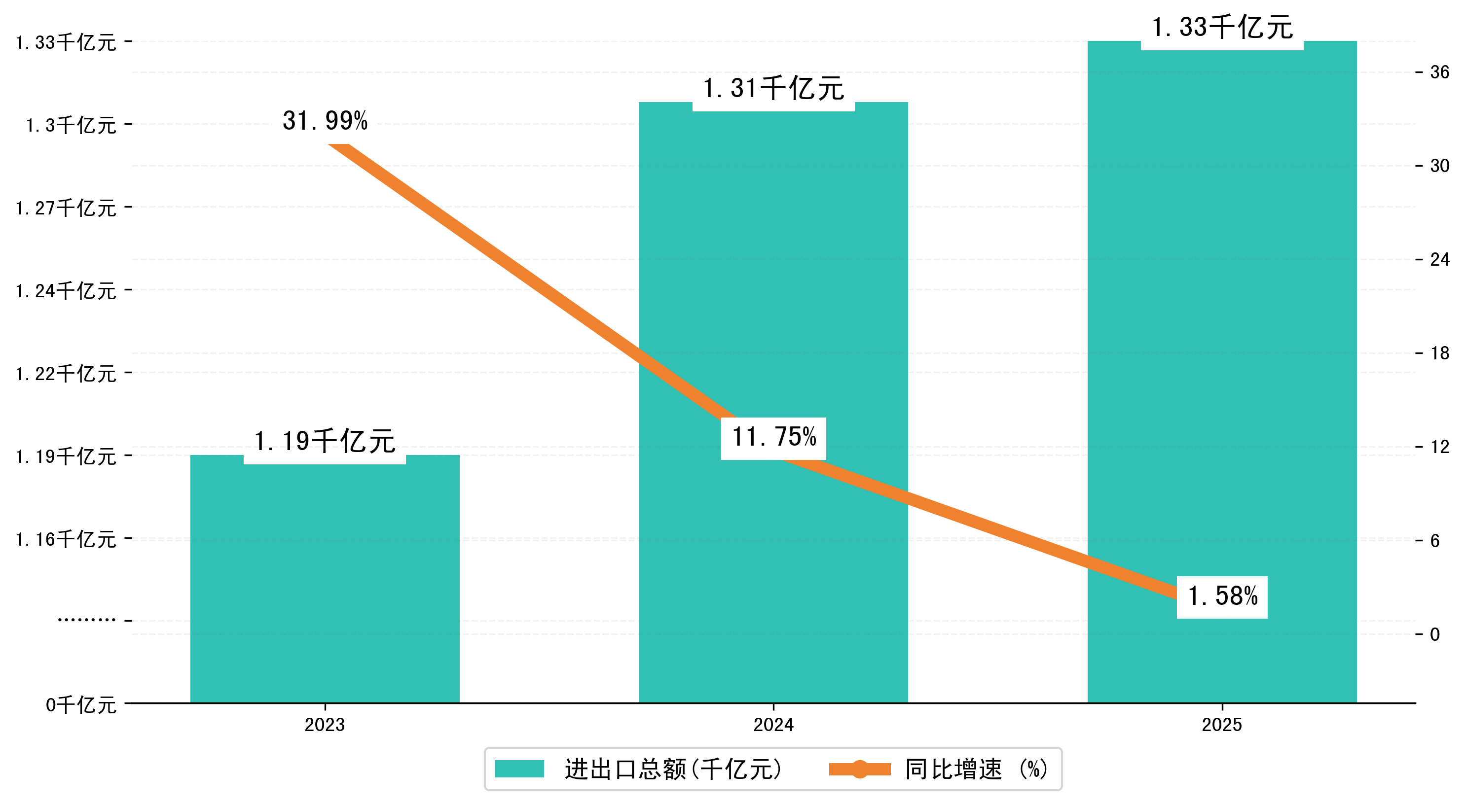 以人民币计,2025年1-5月黑龙江省进出口总额为1327,5552.2667万元,相比上年同期增加了20,6008.1041万元,同比增加了1.60%。