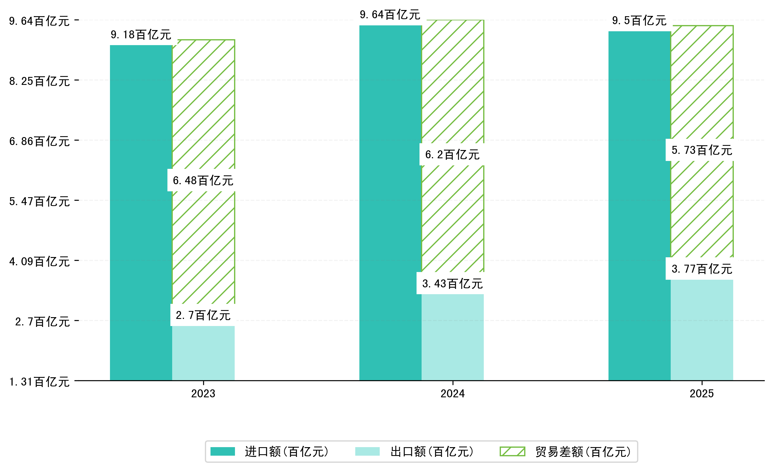 以人民币计,2025年5月黑龙江省贸易差额为118,8775,0306万元(贸易逆差),相比上月增加了1,4457,9820万元,即2881,7292万美元;相比上年同期增加了29,5050,4769万元,同比增加-19.88%。