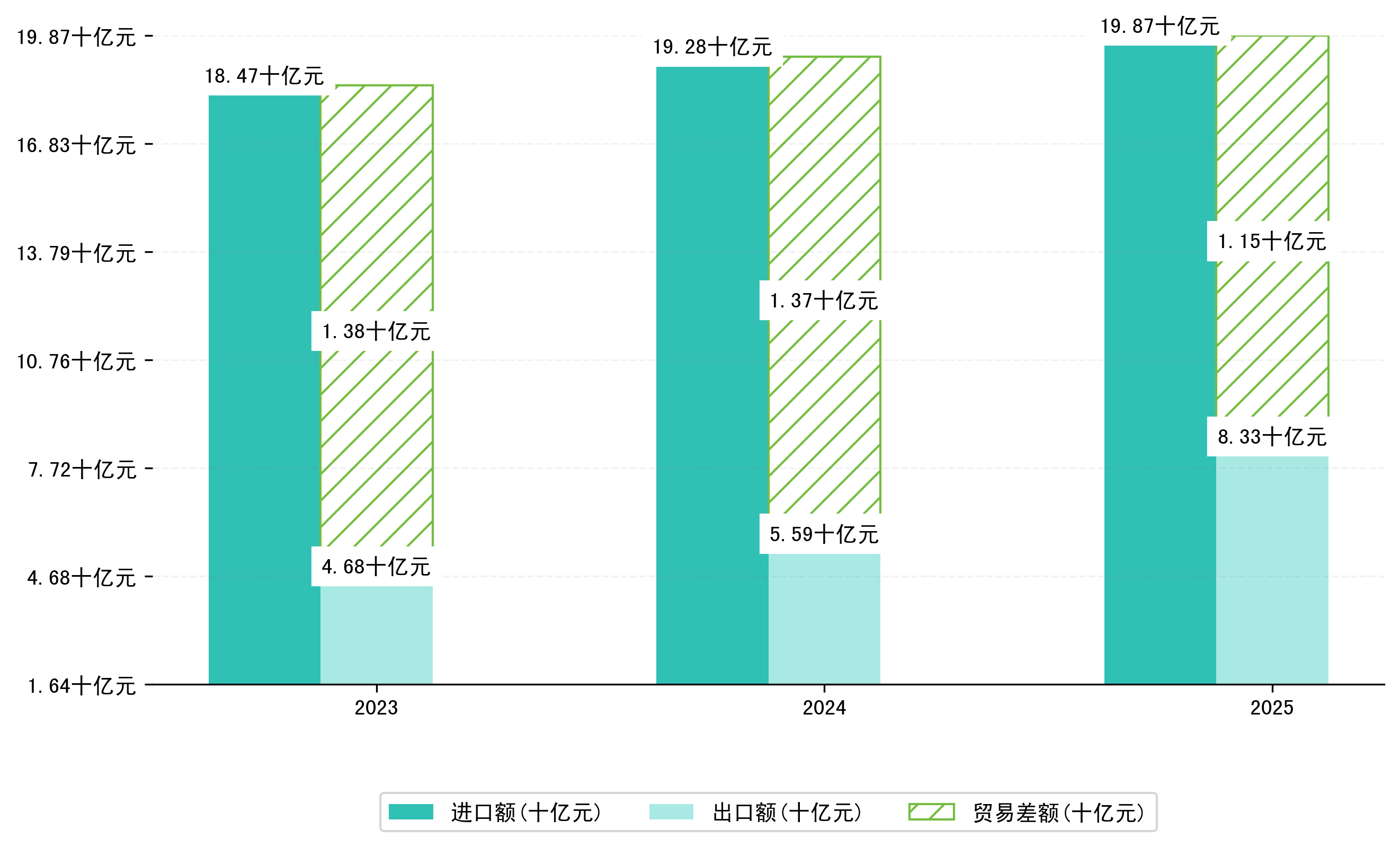 以人民币计,2025年1月黑龙江省贸易差额为115,4237,1357万元(贸易逆差),相比上月减少了37,8545,8187万元,即5,2979,1681万美元;相比上年同期增加了21,4667,7991万元,同比增加-15.68%。