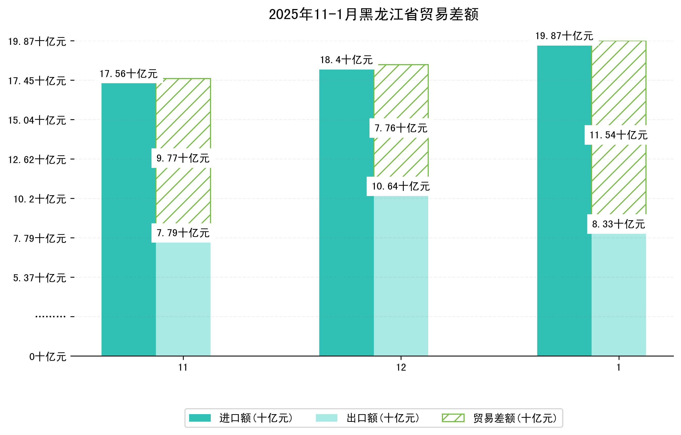 2025年1月黑龙江省进出口总额及进出口差额统计分析