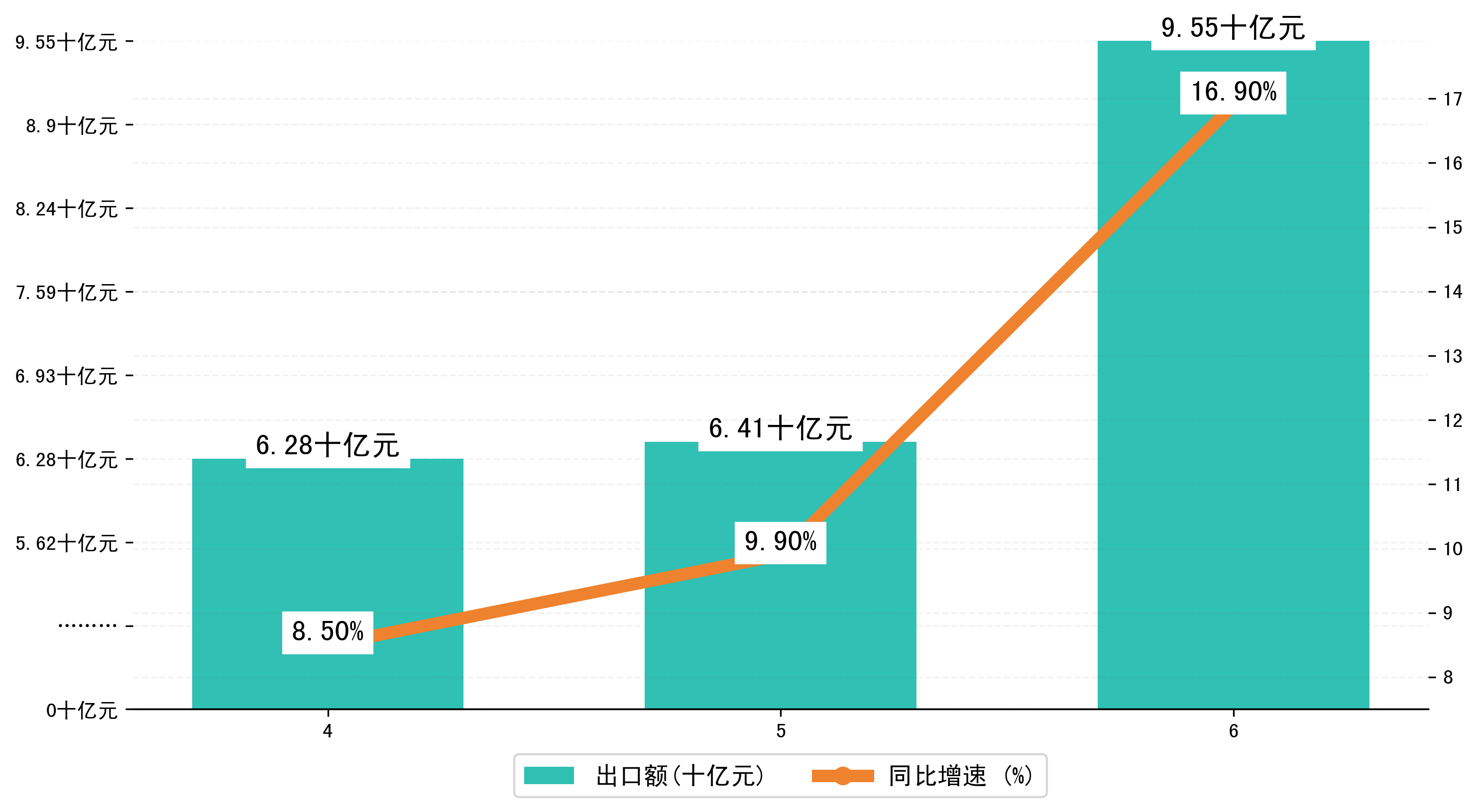 一、2025年6月黑龙江省单月出口总额及进出口差额统计分析