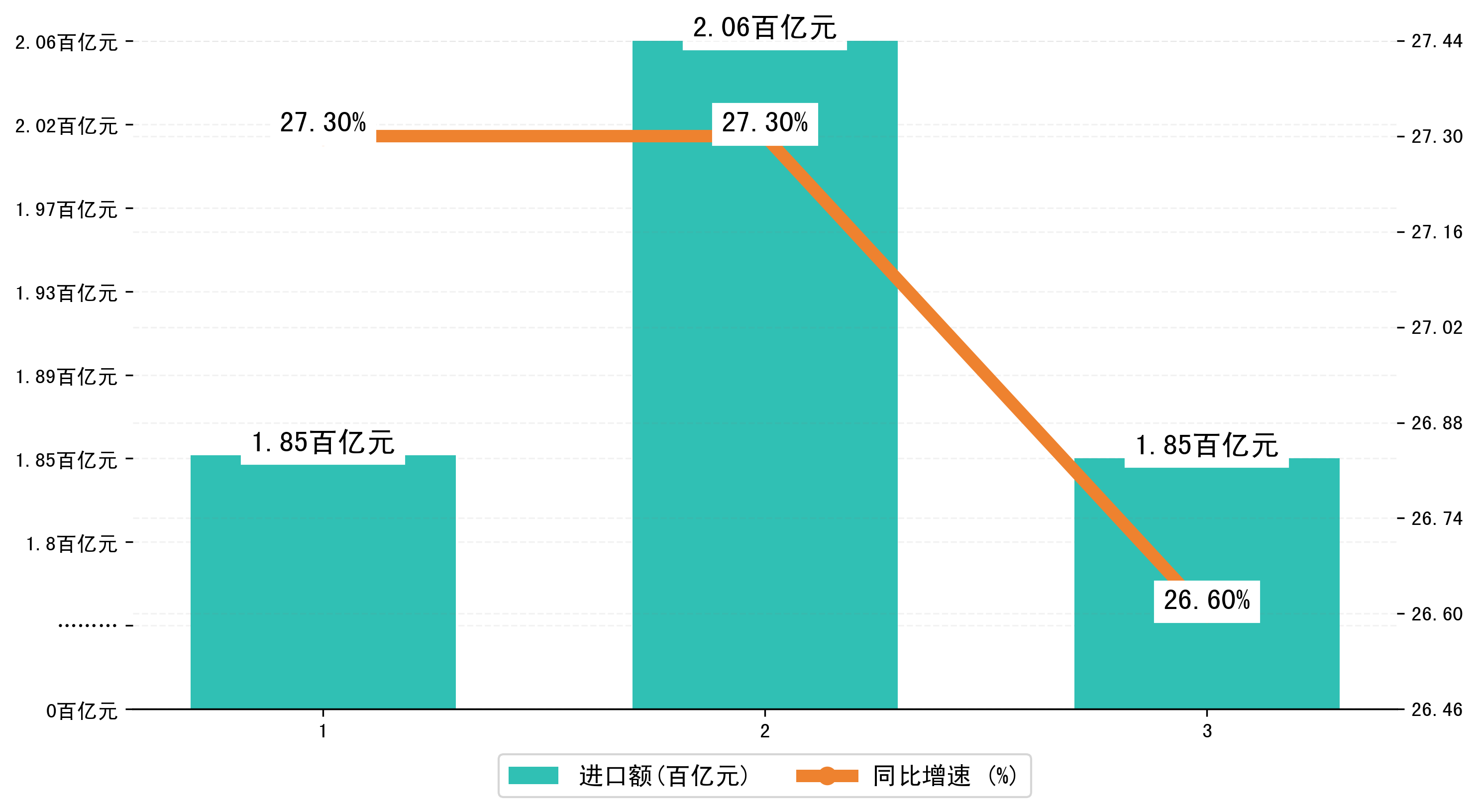 以美元计,2023年3月黑龙江省进口额为27,0261.546万美元,相比上月减少了3,3370.1744万美元;相比上年同期增加了3,9201.3939万美元,同比增加17.40%。