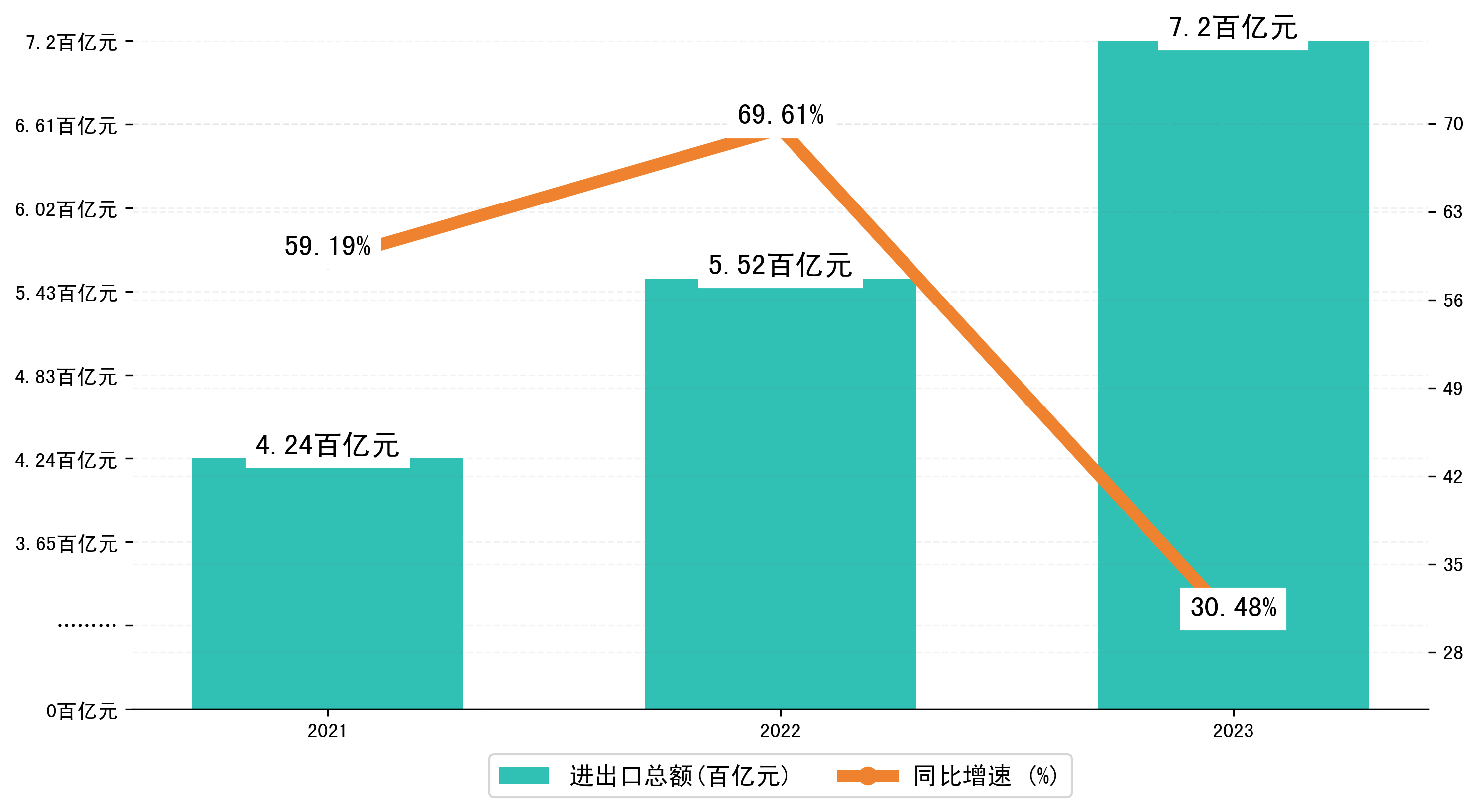以人民币计,2023年1-3月黑龙江省进出口总额为719,8368.2645万元,相比上年同期增加了168,1554.3986万元,同比增加了29.60%。