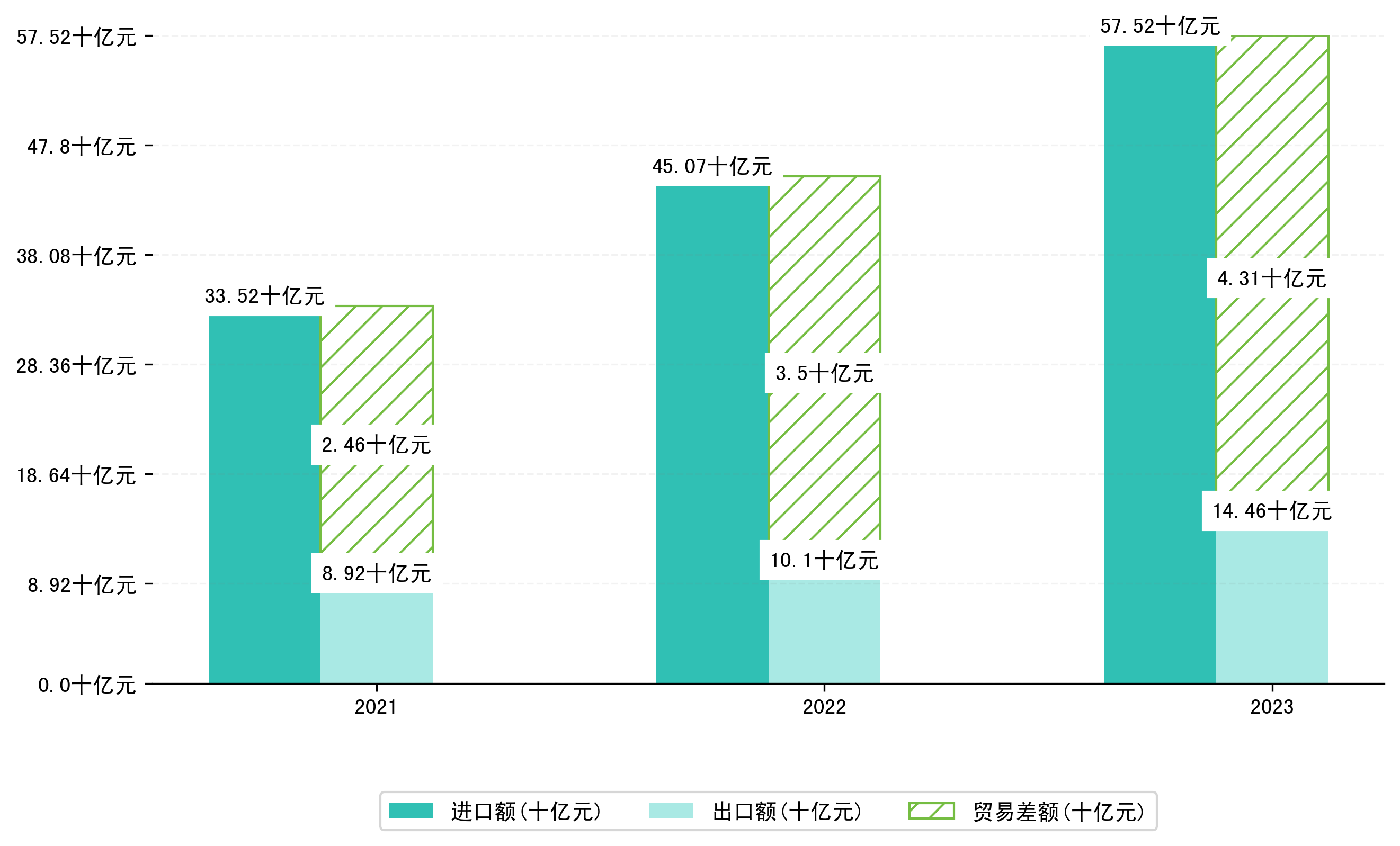 以人民币计,2023年3月黑龙江省贸易差额为133,0086,5509万元(贸易逆差),相比上月增加了26,6905,0774万元,即4,0437,3463万美元;相比上年同期减少了24,0987,2352万元,同比减少22.13%。