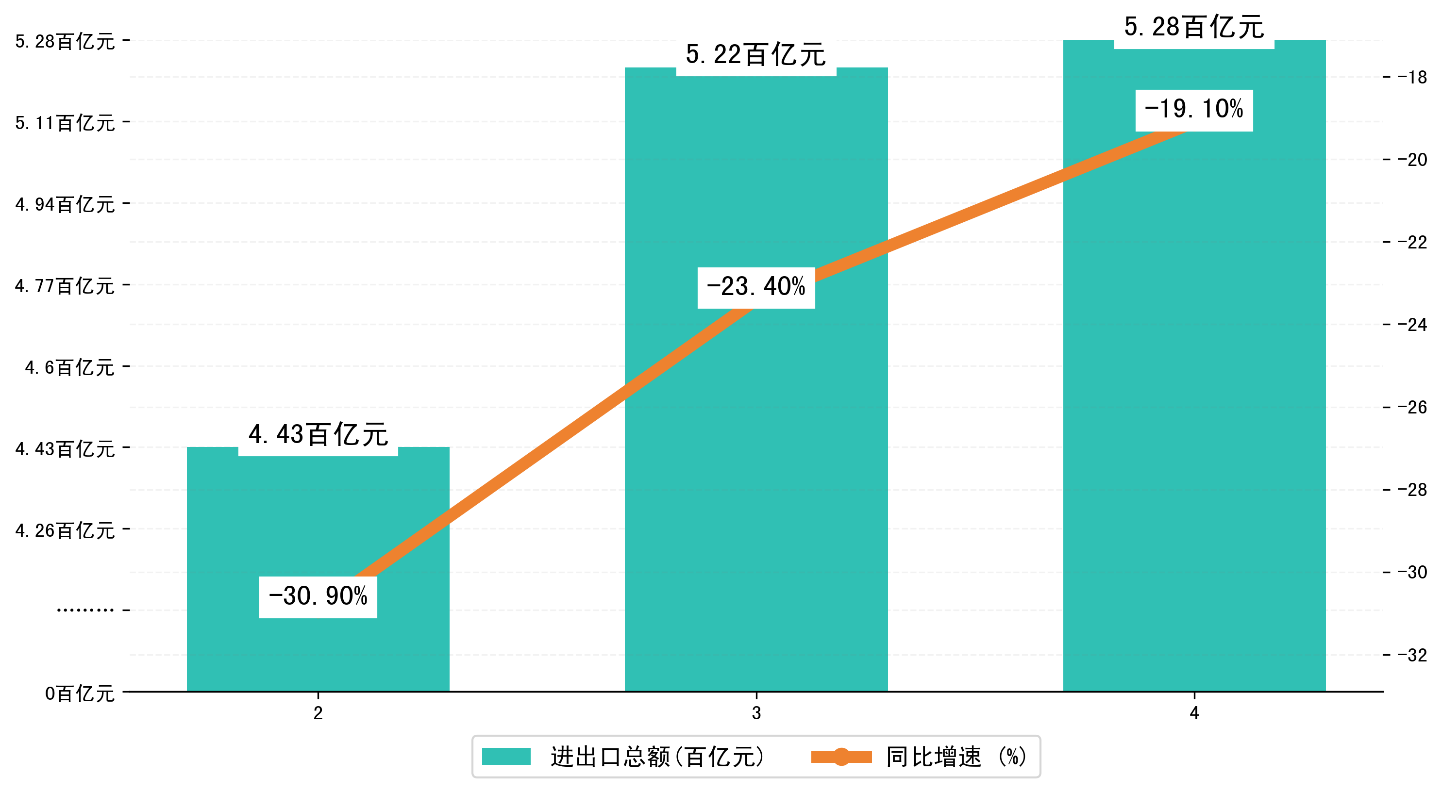(图一:2024年2-4月河南省进出口总额)
