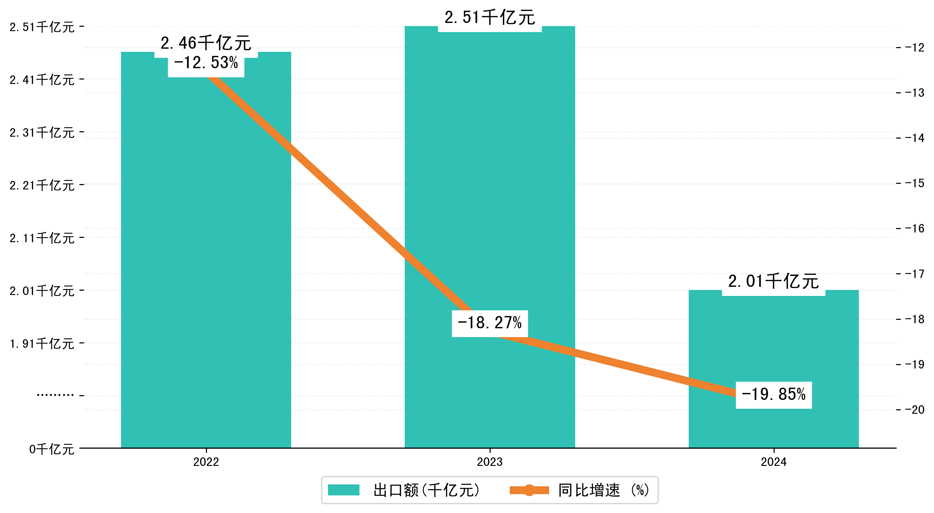 以美元计,2024年1-6月河南省出口额为282,7177.4685万美元,相比上年同期减少了80,8810.6017万美元,同比减少-21.60%。