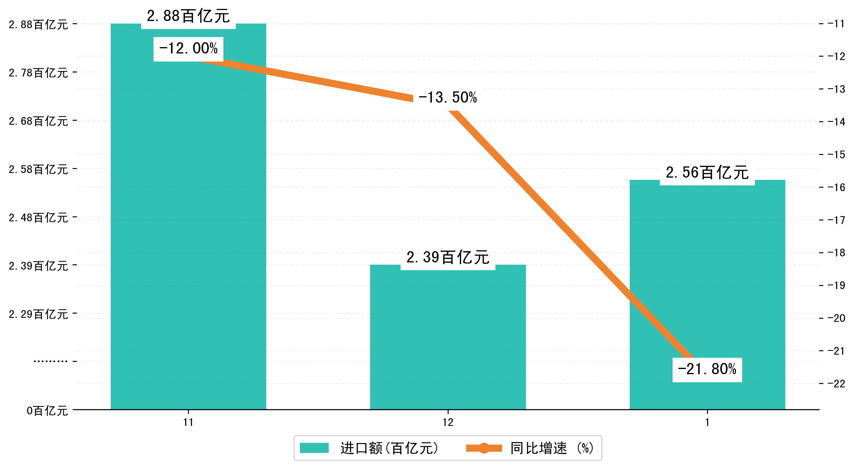 以人民币计,2024年1月河南省进口额为255,9878.6898万元,相比上月增加了17,4470.4184万元;相比上年同期减少了68,2867.97万元,同比减少了-21.80%。