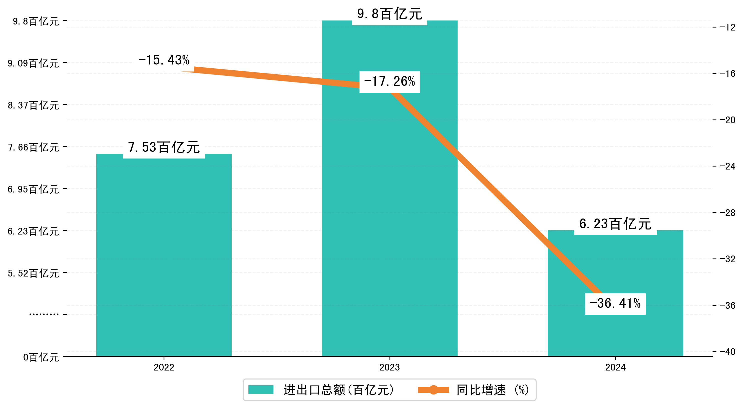 以人民币计,2024年1-1月河南省进出口总额为623,2840.4507万元,相比上年同期减少了356,9042.244万元,同比减少了-36.50%。