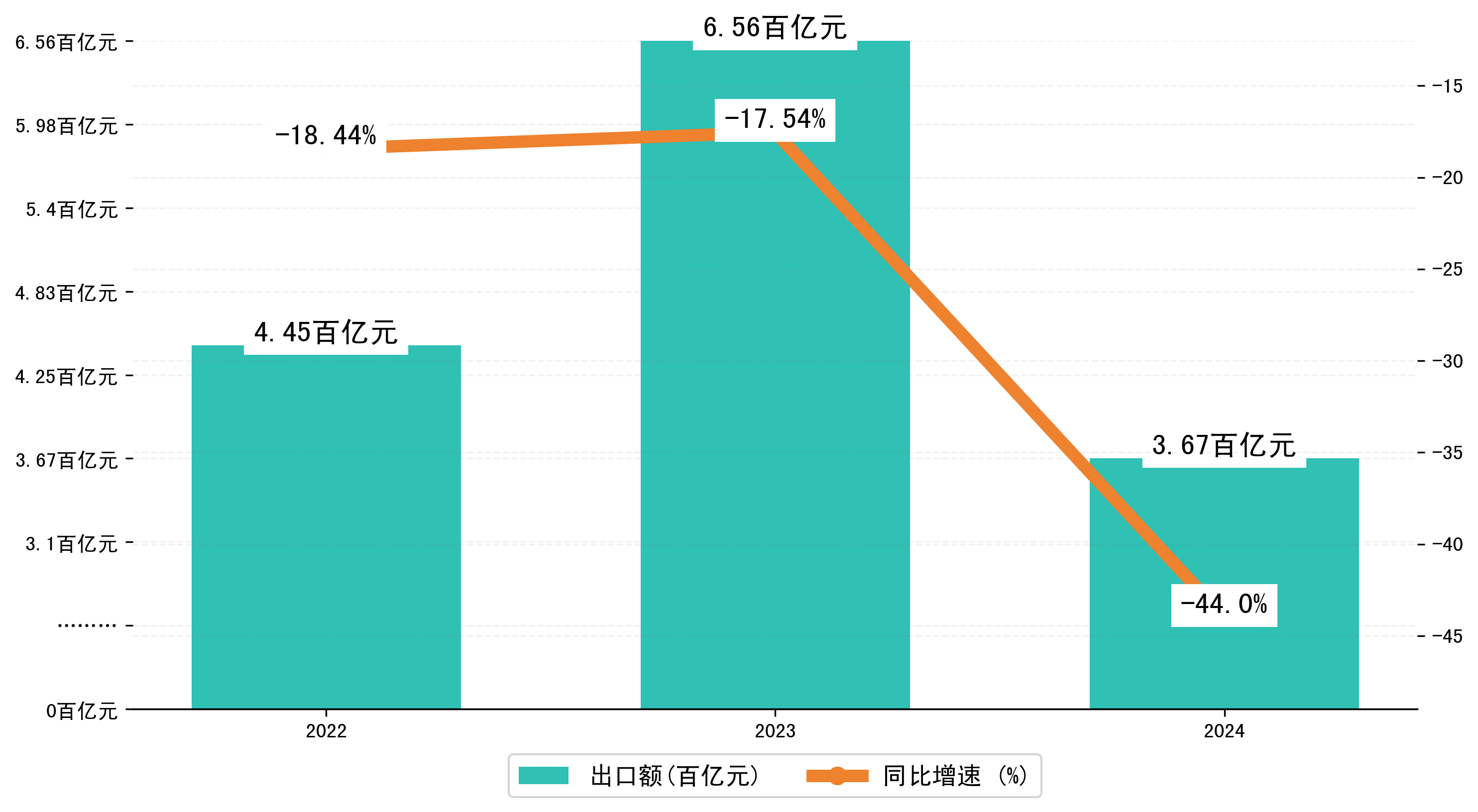 以美元计,2024年1-1月河南省出口额为51,7318.8589万美元,相比上年同期减少了42,3472.0059万美元,同比减少-44.90%。