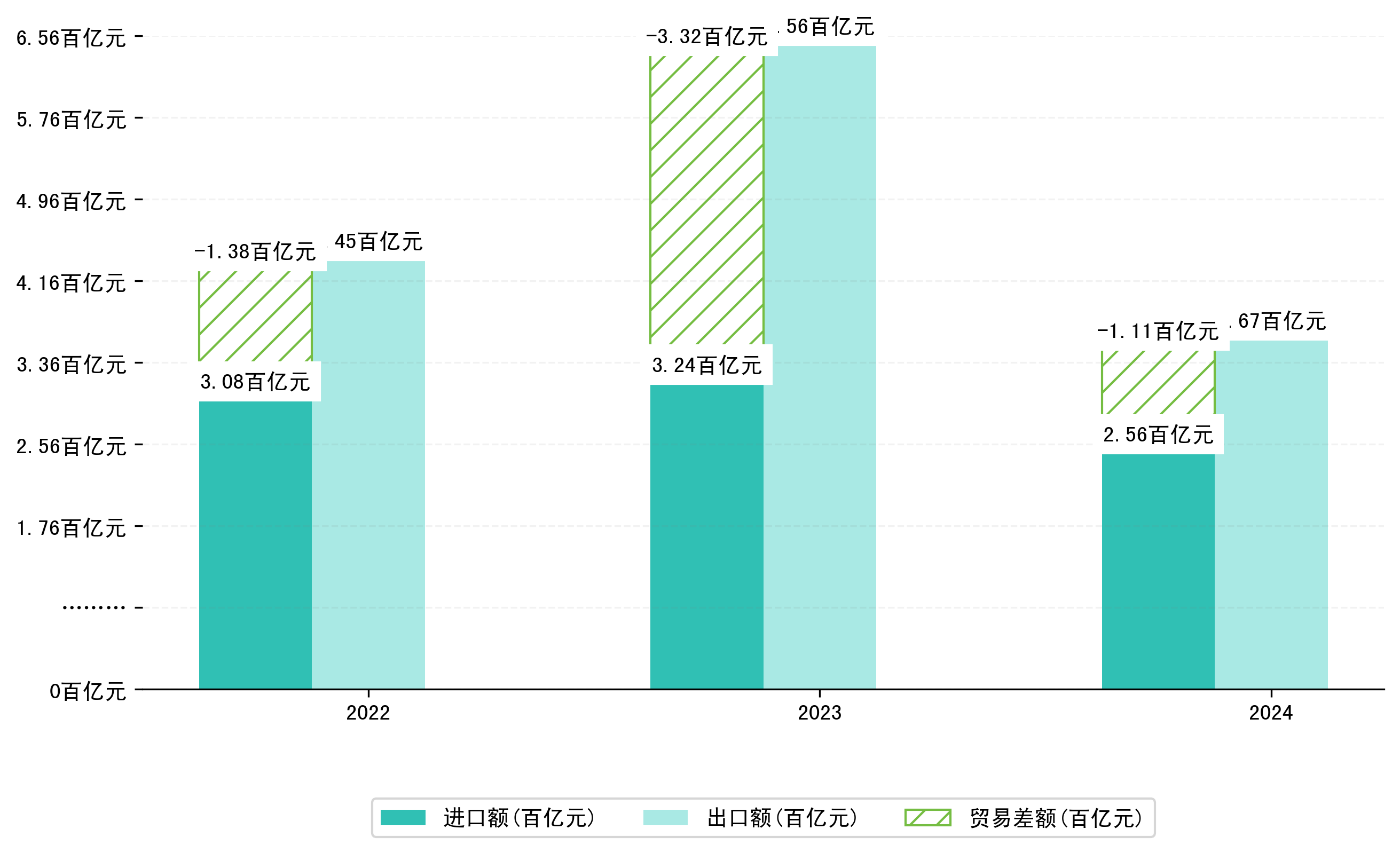 以美元计,2024年1-1月河南省贸易差额为15,6666,3022万美元(贸易顺差),相比上年同期减少了31,8947,2133万美元,同比减少-67.06%。