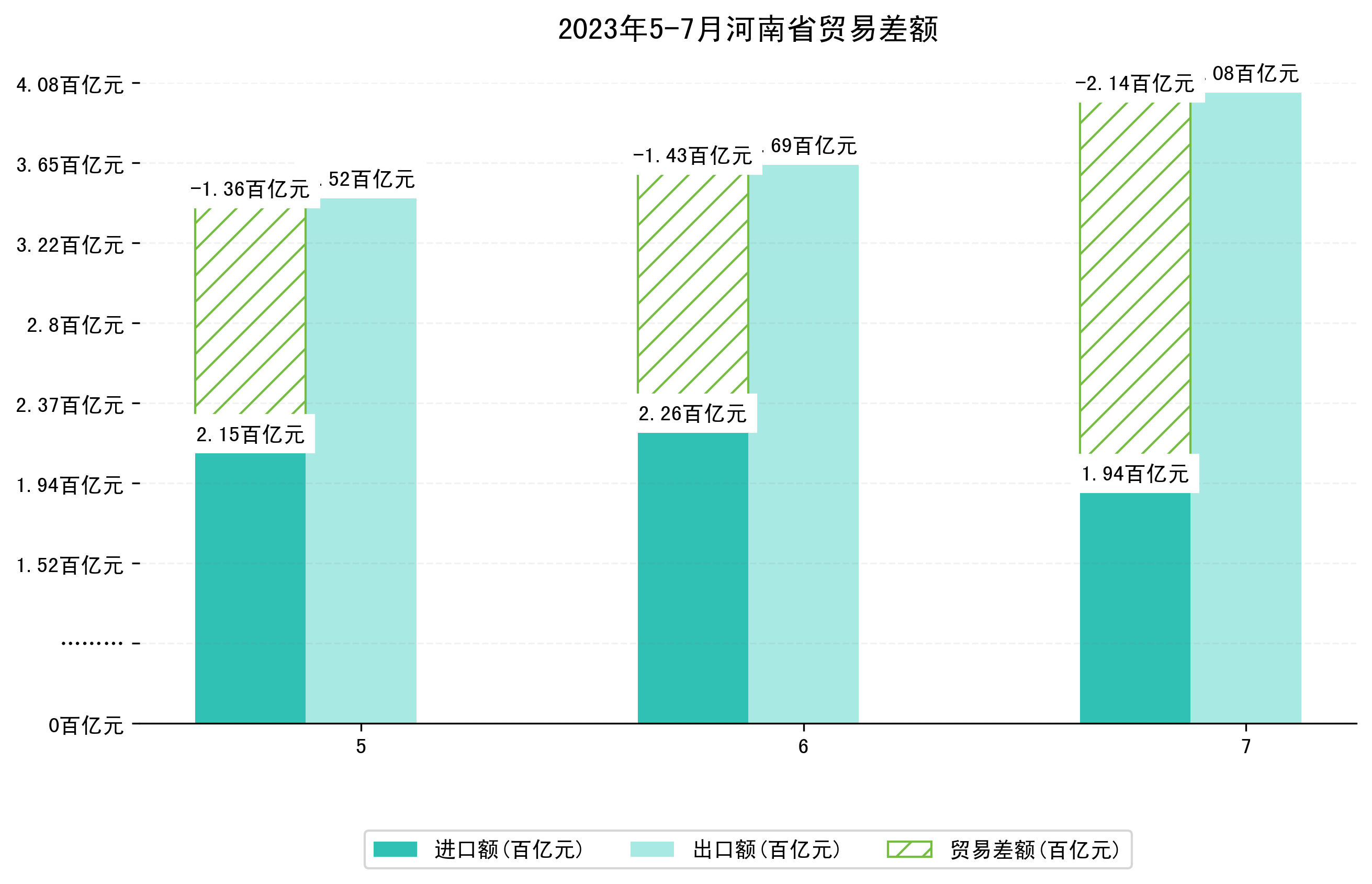 以美元计,2023年1-7月河南省贸易差额为205,7207,3807万美元(贸易顺差),相比上年同期增加了30,7624,5795万美元,同比增加17.58%。