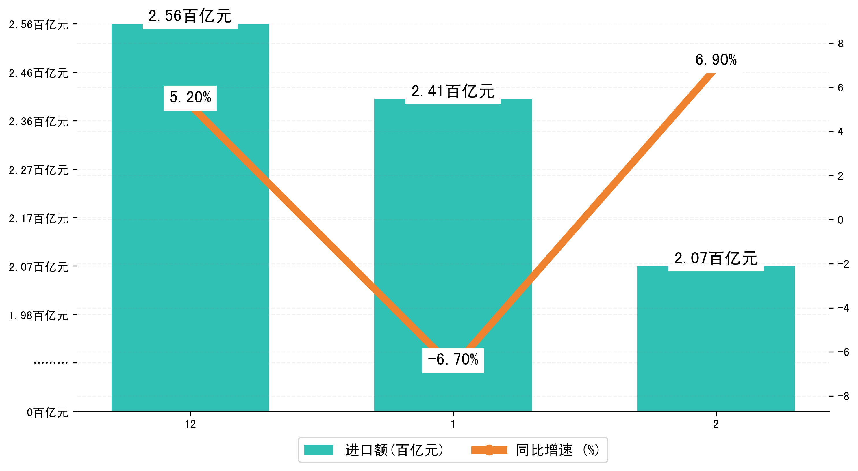 以人民币计,2025年2月河南省进口额为207,2397.5442万元,相比上月减少了33,2982.0545万元;相比上年同期增加了48,7364.0968万元,同比增加了6.90%。