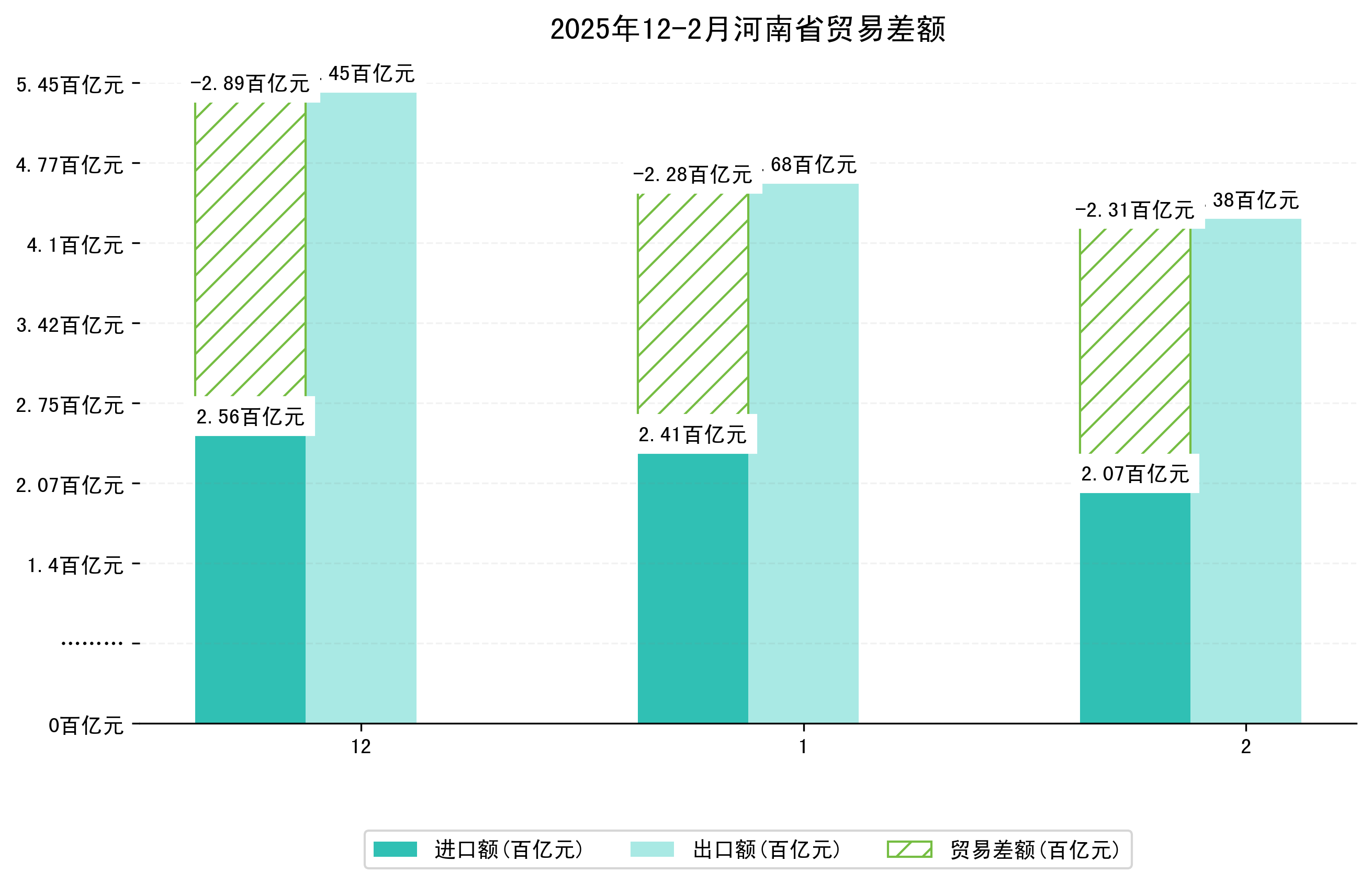 以人民币计,2025年2月河南省贸易差额为231,0717,6637万元(贸易顺差),相比上月增加了3,5473,7021万元,即5170,2416万美元;相比上年同期增加了104,8909,2761万元,同比增加83.13%。