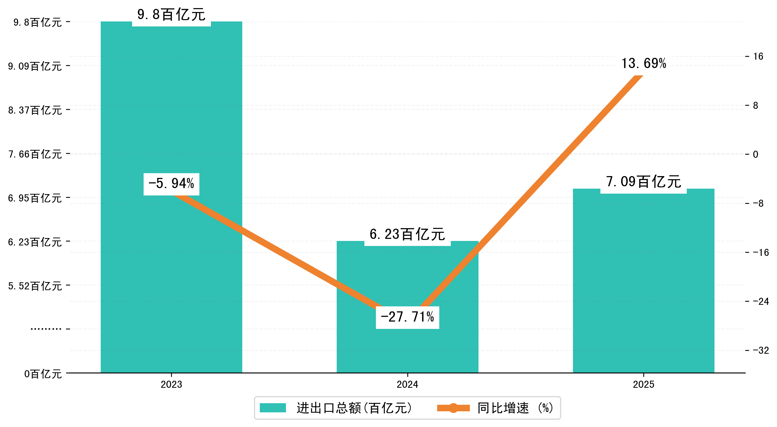 以人民币计,2025年1-1月河南省进出口总额为708,6003.1591万元,相比上年同期增加了85,3162.7084万元,同比增加了13.50%。
