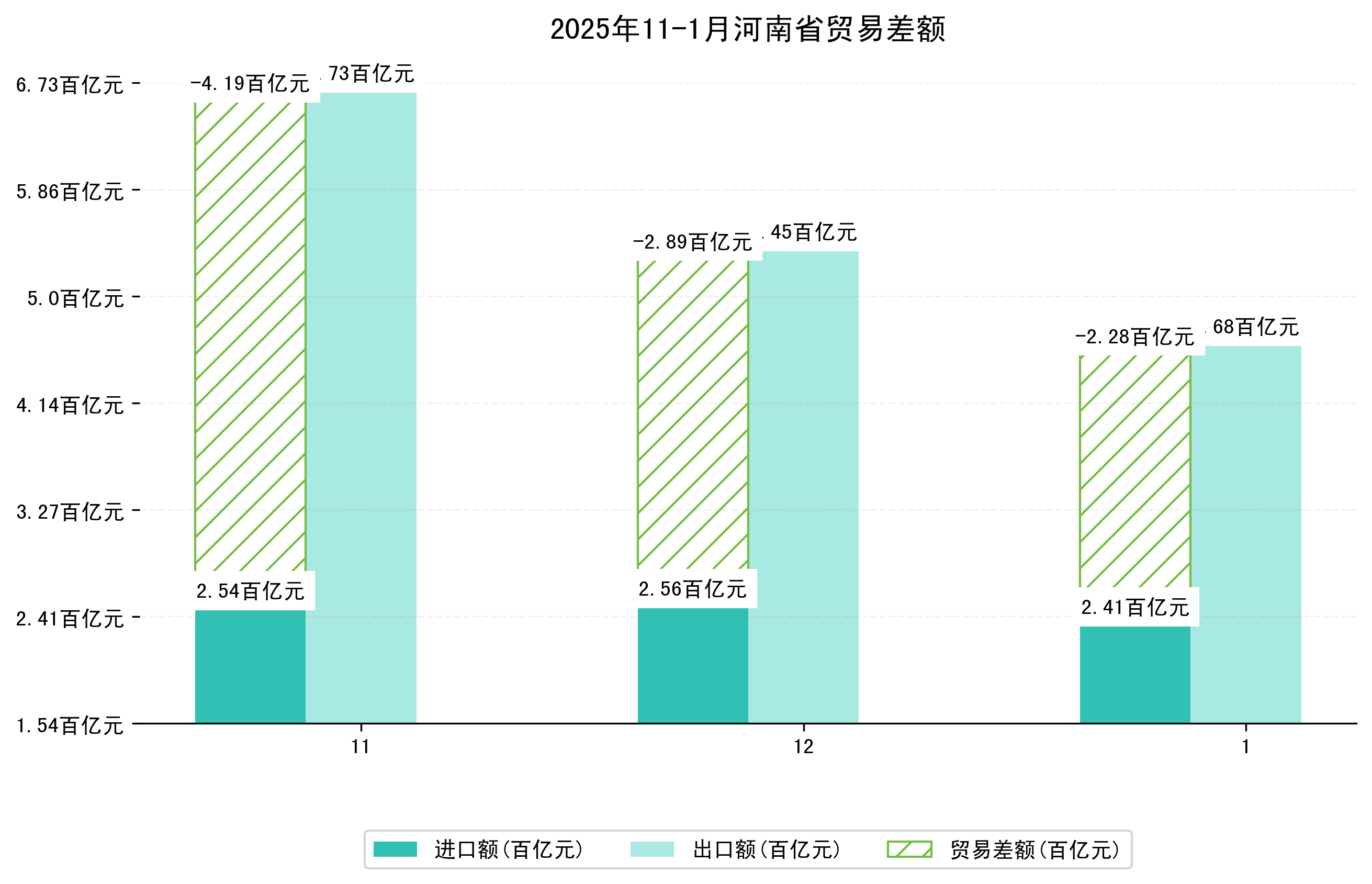 以美元计,2025年1-1月河南省贸易差额为31,6343,2150万美元(贸易顺差),相比上年同期增加了15,9676,9128万美元,同比增加101.92%。