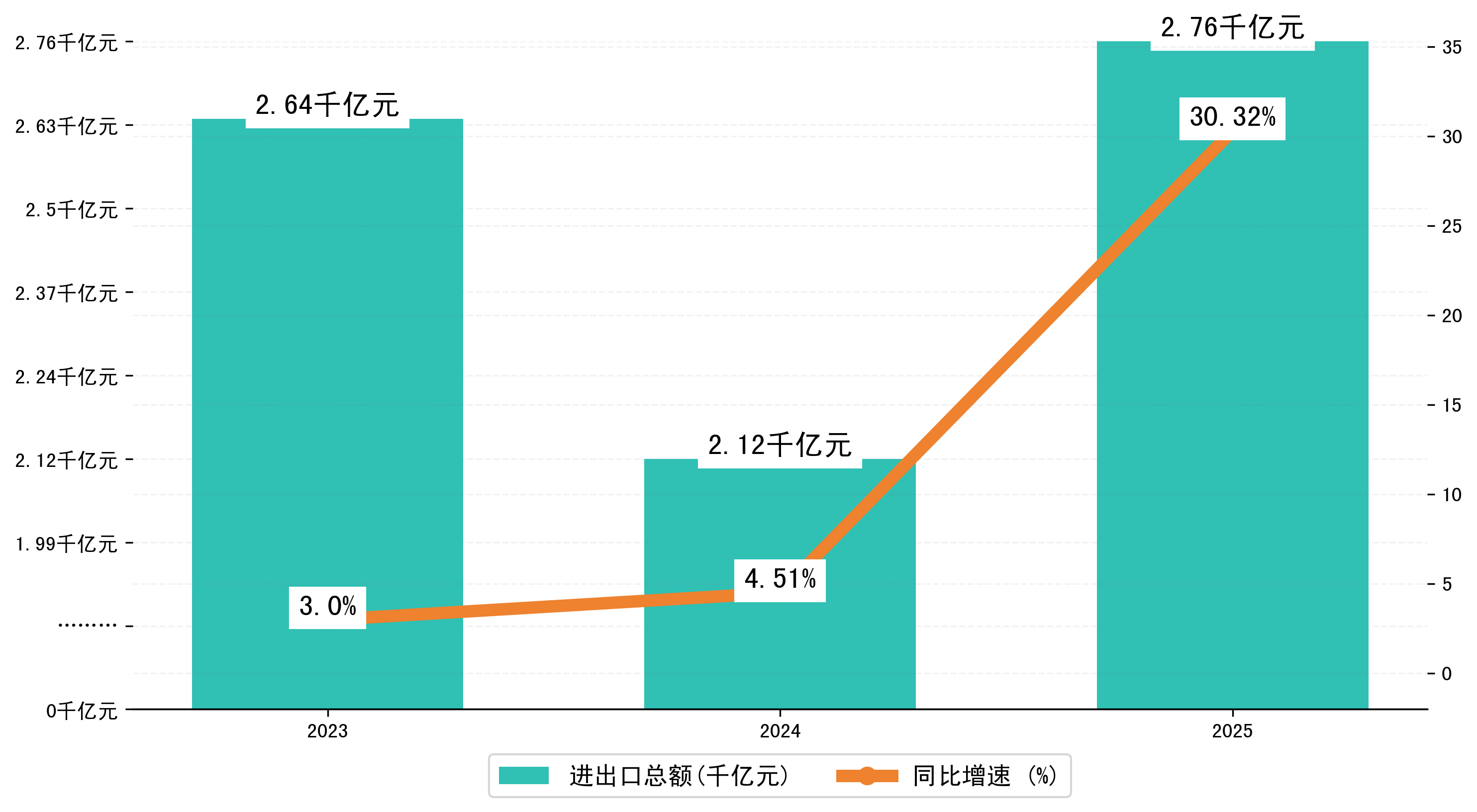 以人民币计,2025年1-4月河南省进出口总额为2757,6724.2217万元,相比上年同期增加了641,6427.4492万元,同比增加了29.50%。