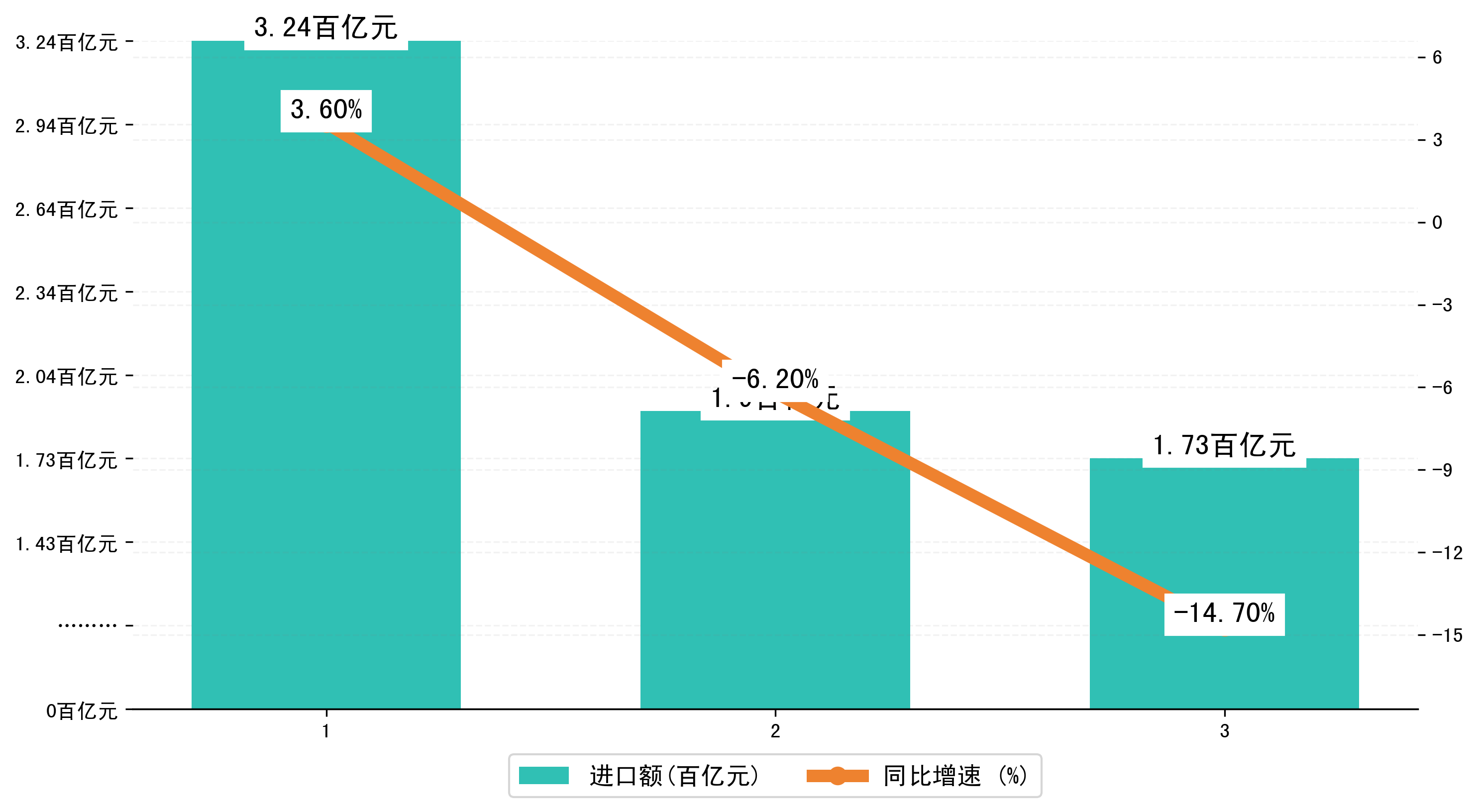 以人民币计,2023年3月河南省进口额为173,3759.758万元,相比上月减少了17,1202.0283万元;相比上年同期减少了85,6571.3623万元,同比减少了-14.70%。