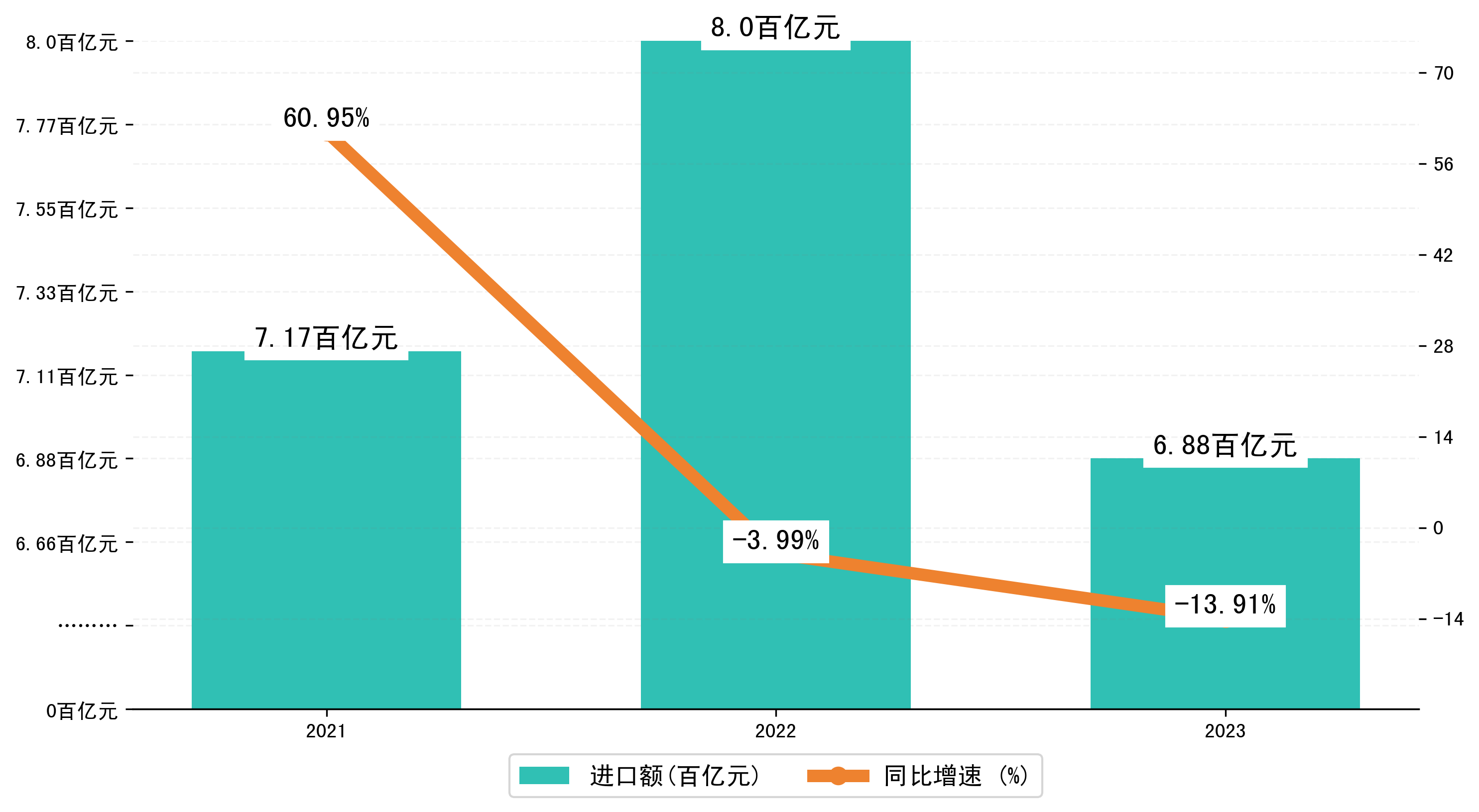 以美元计,2023年1-3月河南省进口额为100,0216.3014万美元,相比上年同期减少了25,6493.3247万美元,同比减少-21.20%。