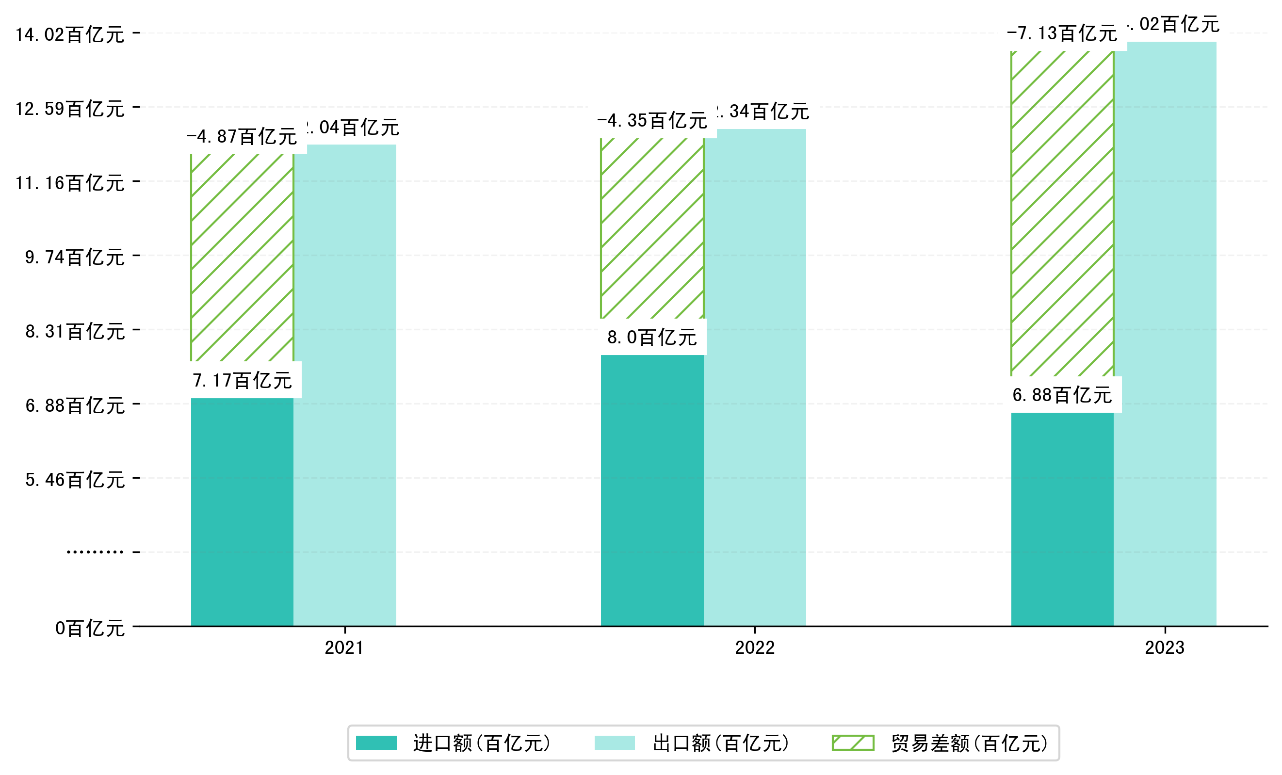 以美元计,2023年1-3月河南省贸易差额为103,6373,8172万美元(贸易顺差),相比上年同期增加了35,3805,1040万美元,同比增加51.83%。