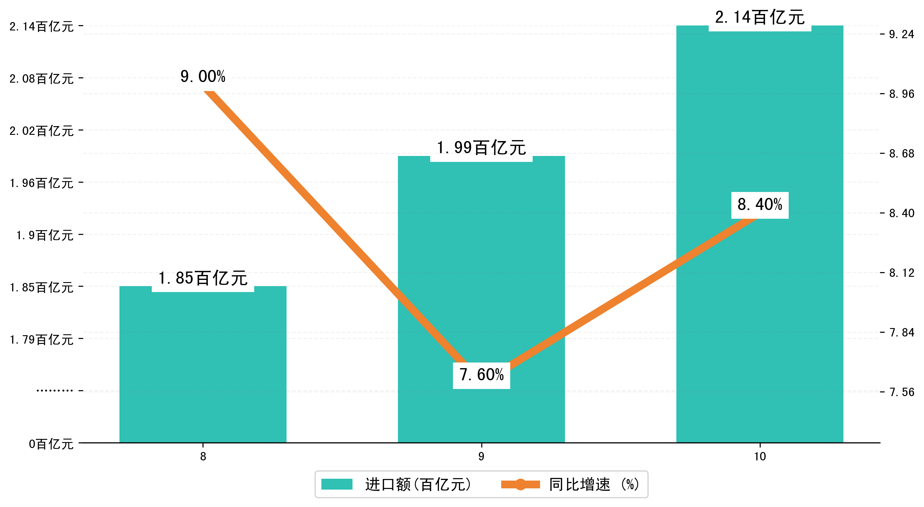 (图三:2024年8-10月湖北省进口额)