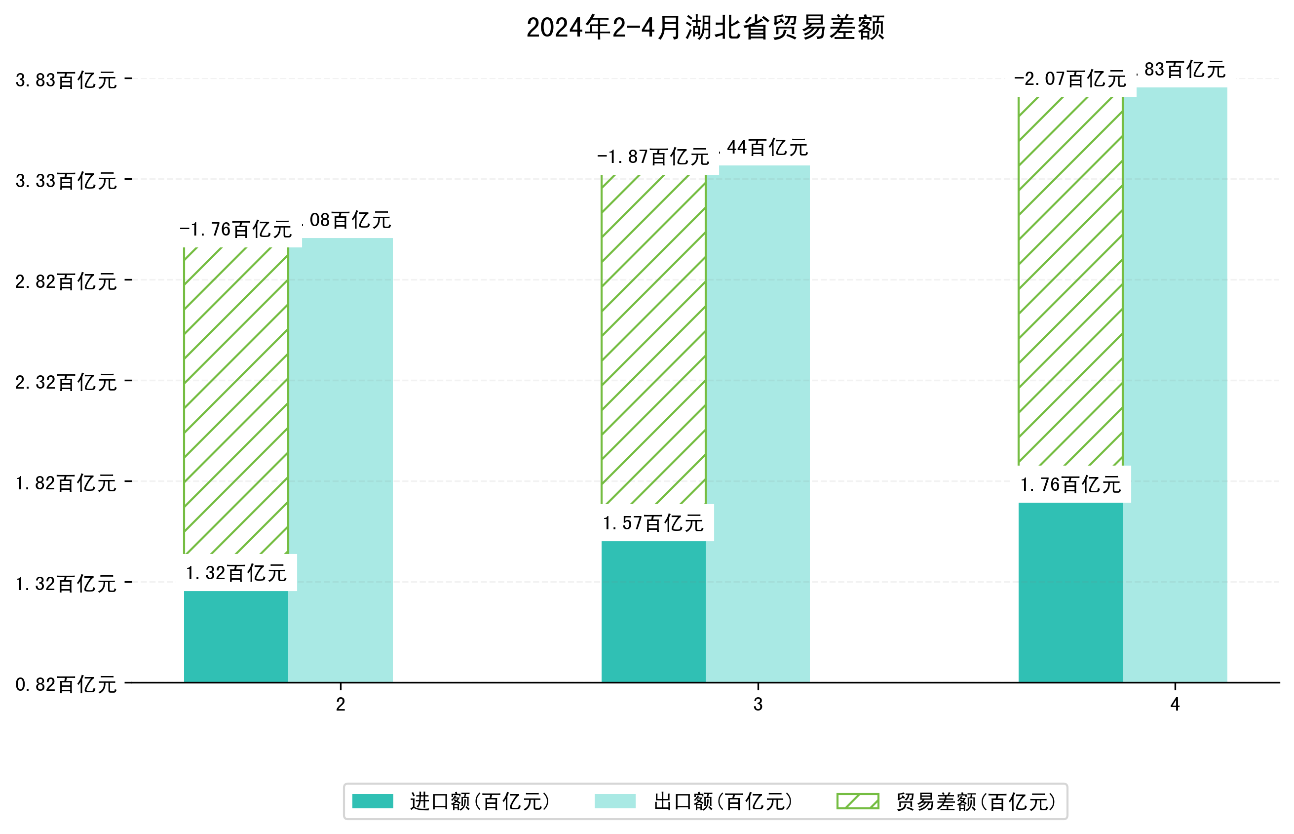2024年4月湖北省进出口总额及进出口差额统计分析