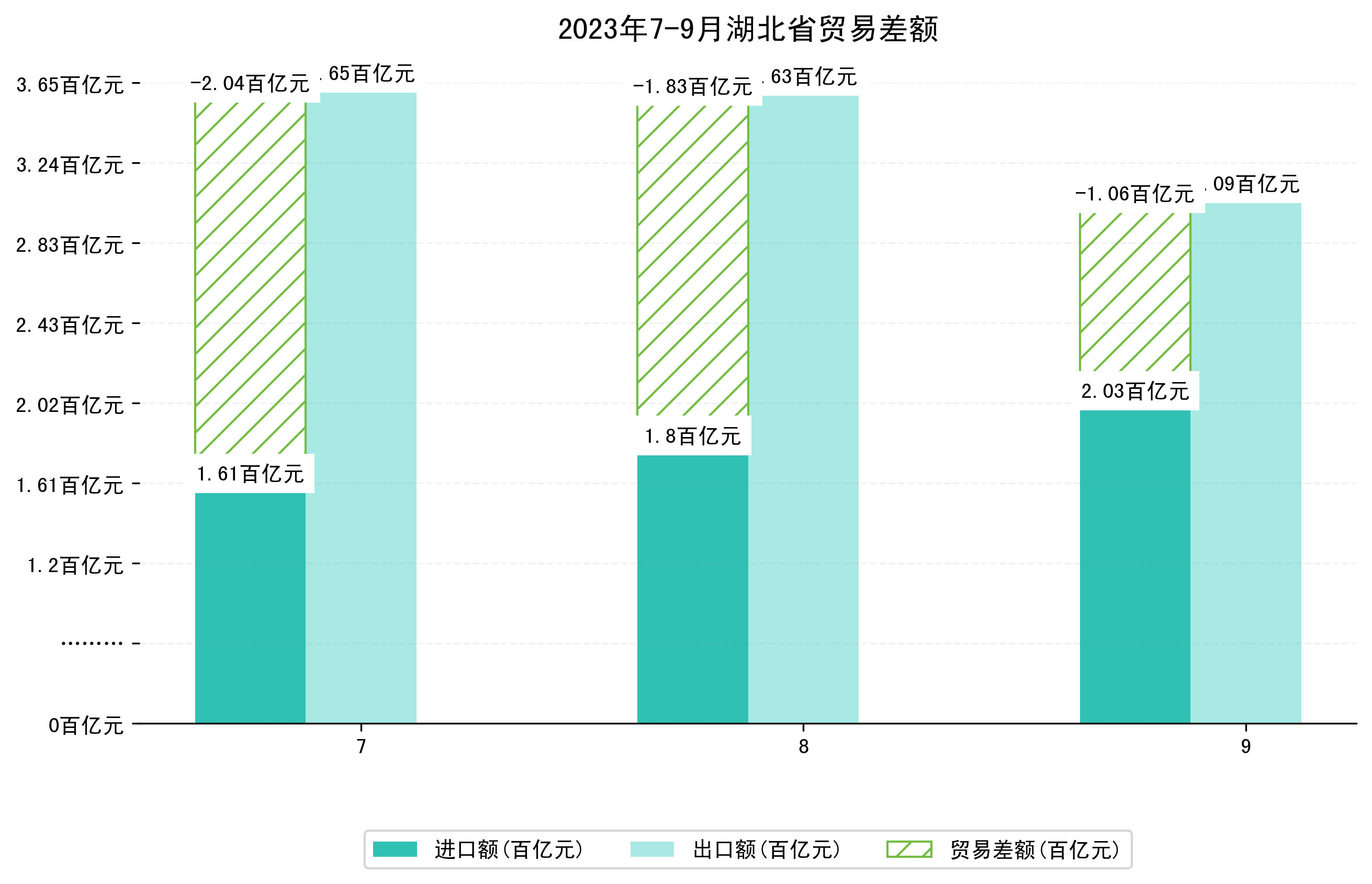 2023年9月湖北省进出口总额及进出口差额统计分析