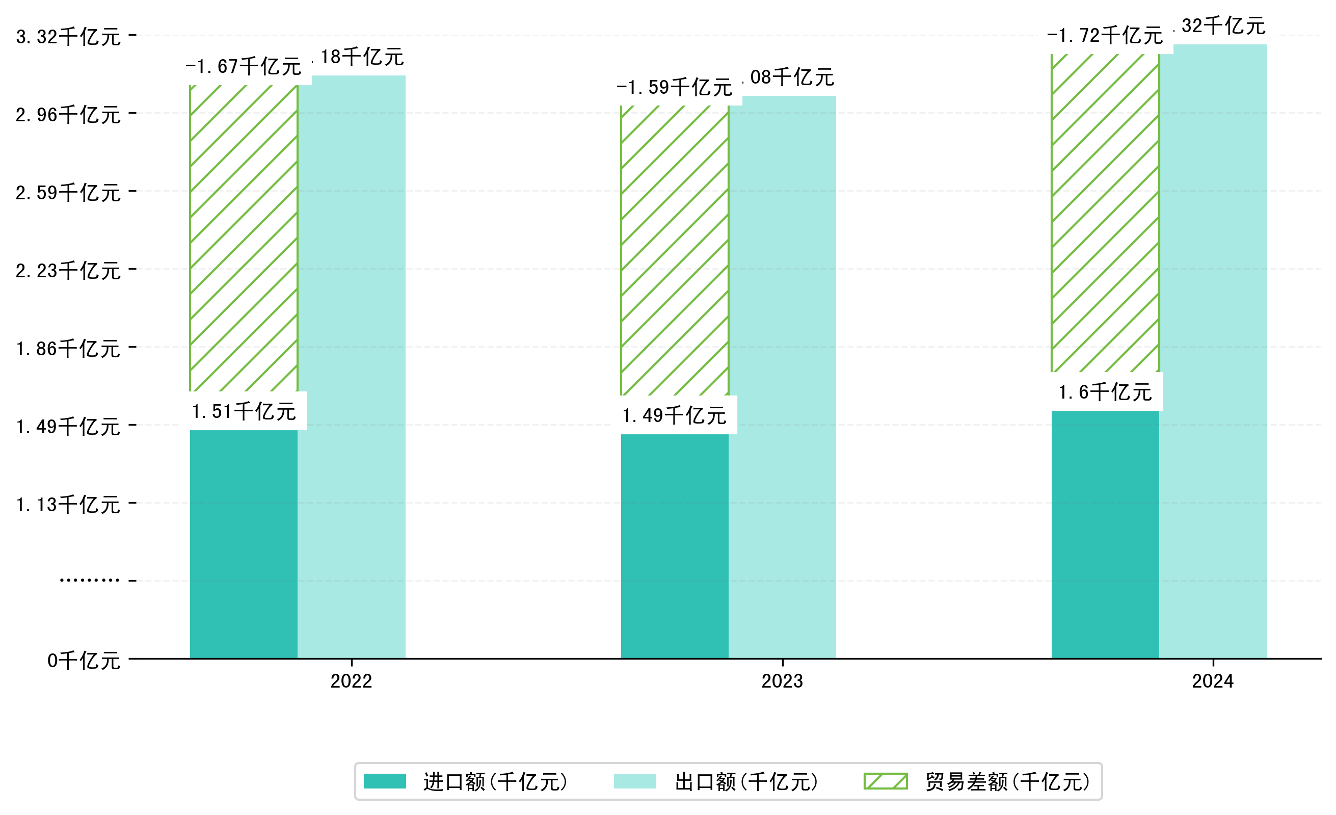 以人民币计,2024年1-9月湖北省贸易差额为1720,3727,3216万元(贸易顺差),相比上年同期增加了130,7970,4857万元,同比增加8.23%。