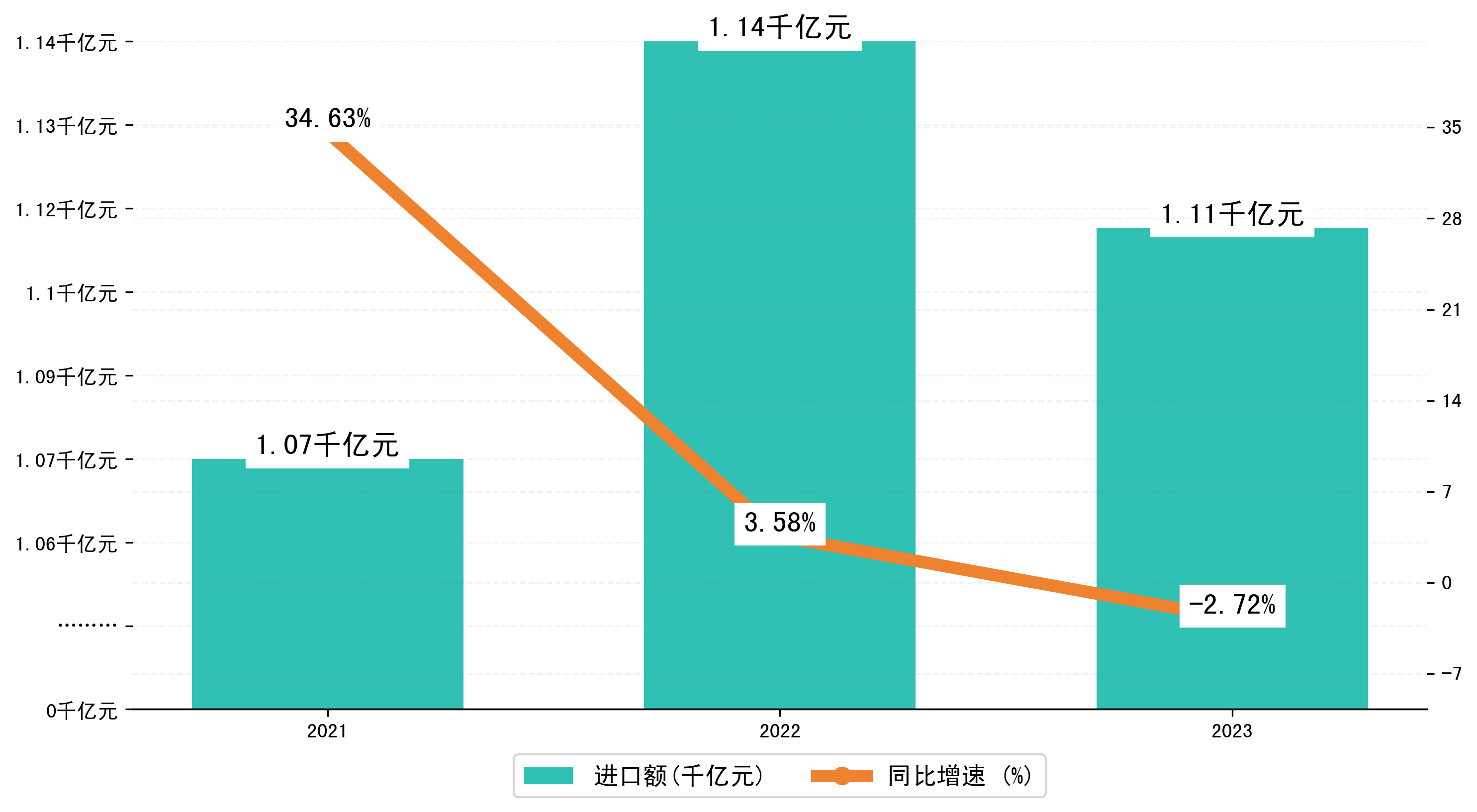以人民币计,2023年1-7月湖北省进口额为1111,9596.2396万元,相比上年同期减少了31,1058.5933万元,同比减少了-2.00%。