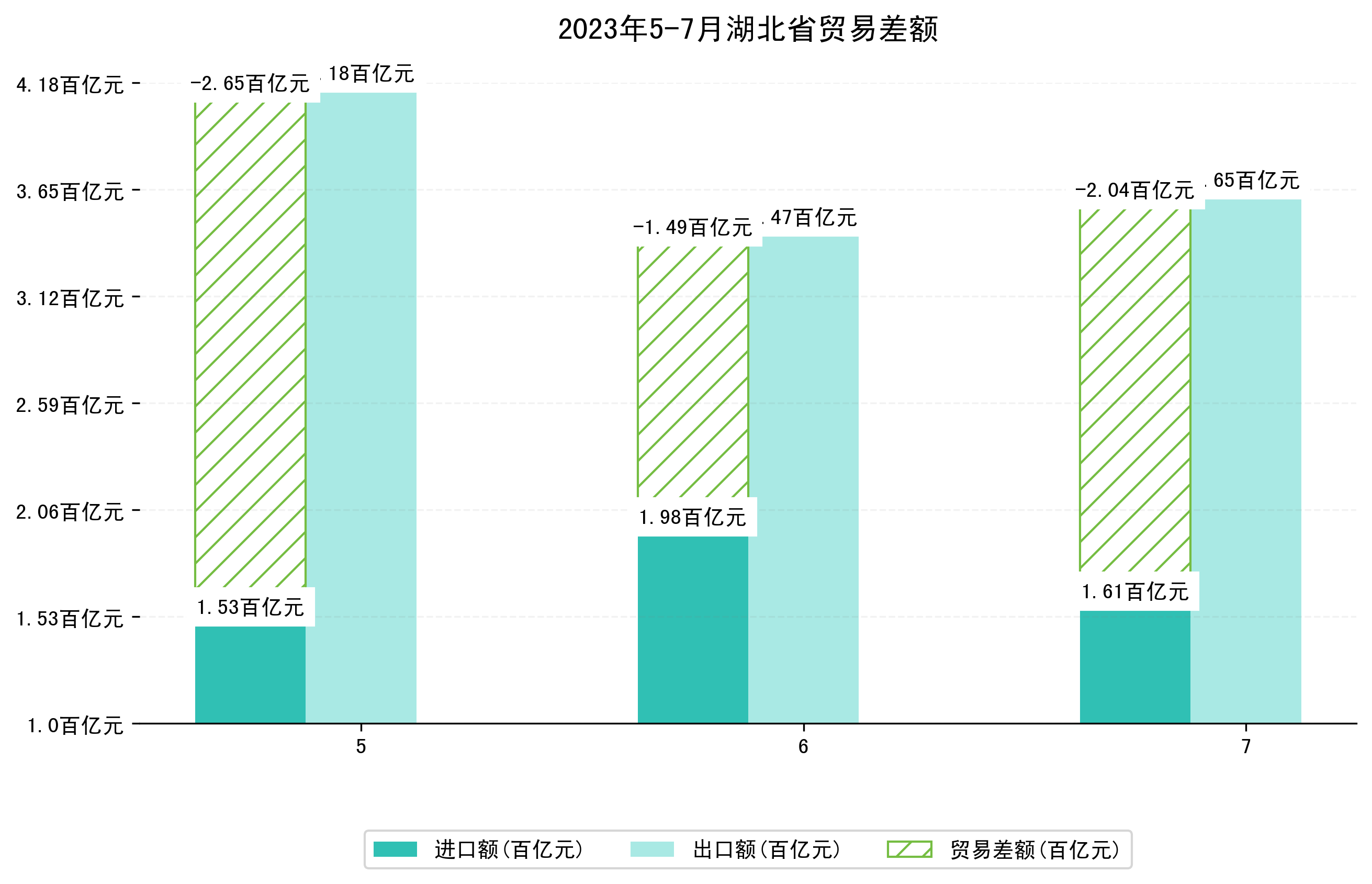 2023年7月湖北省进出口总额及进出口差额统计分析