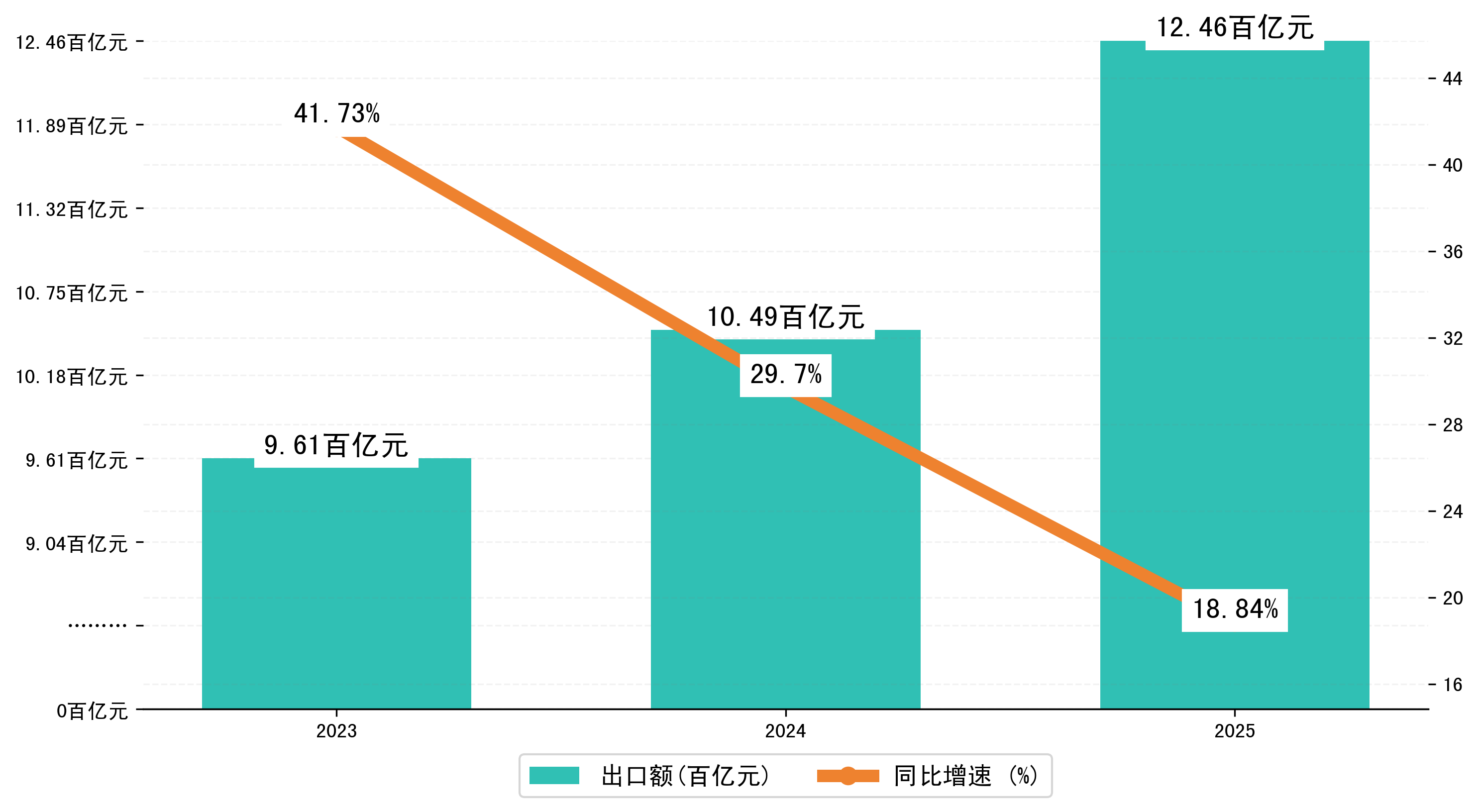 以人民币计,2025年1-3月湖北省出口额为1246,1945.0069万元,相比上年同期增加了197,5974.5466万元,同比增加了22.40%。