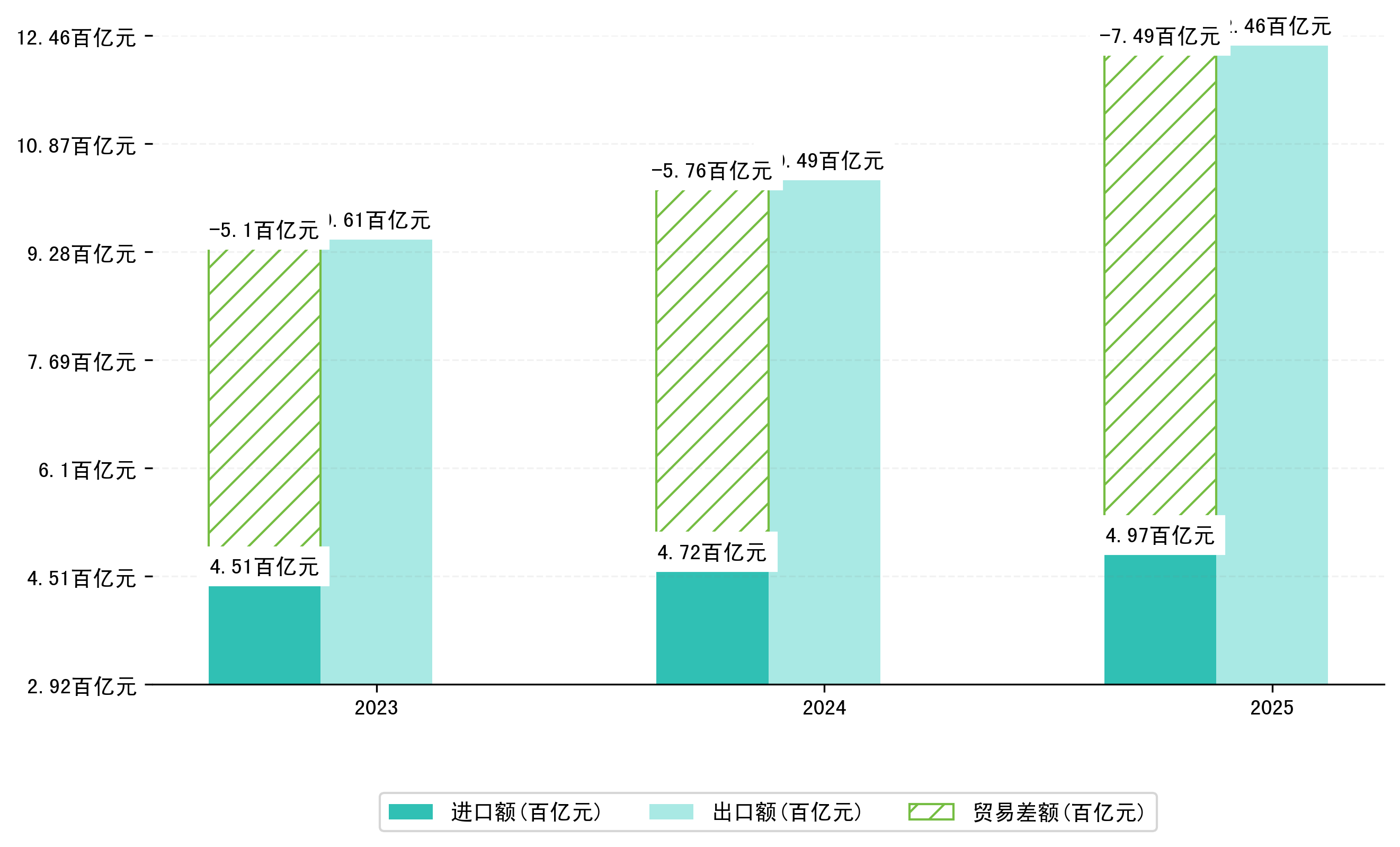 以人民币计,2025年1-3月湖北省贸易差额为749,2986,2848万元(贸易顺差),相比上年同期增加了172,9486,3015万元,同比增加30.01%。