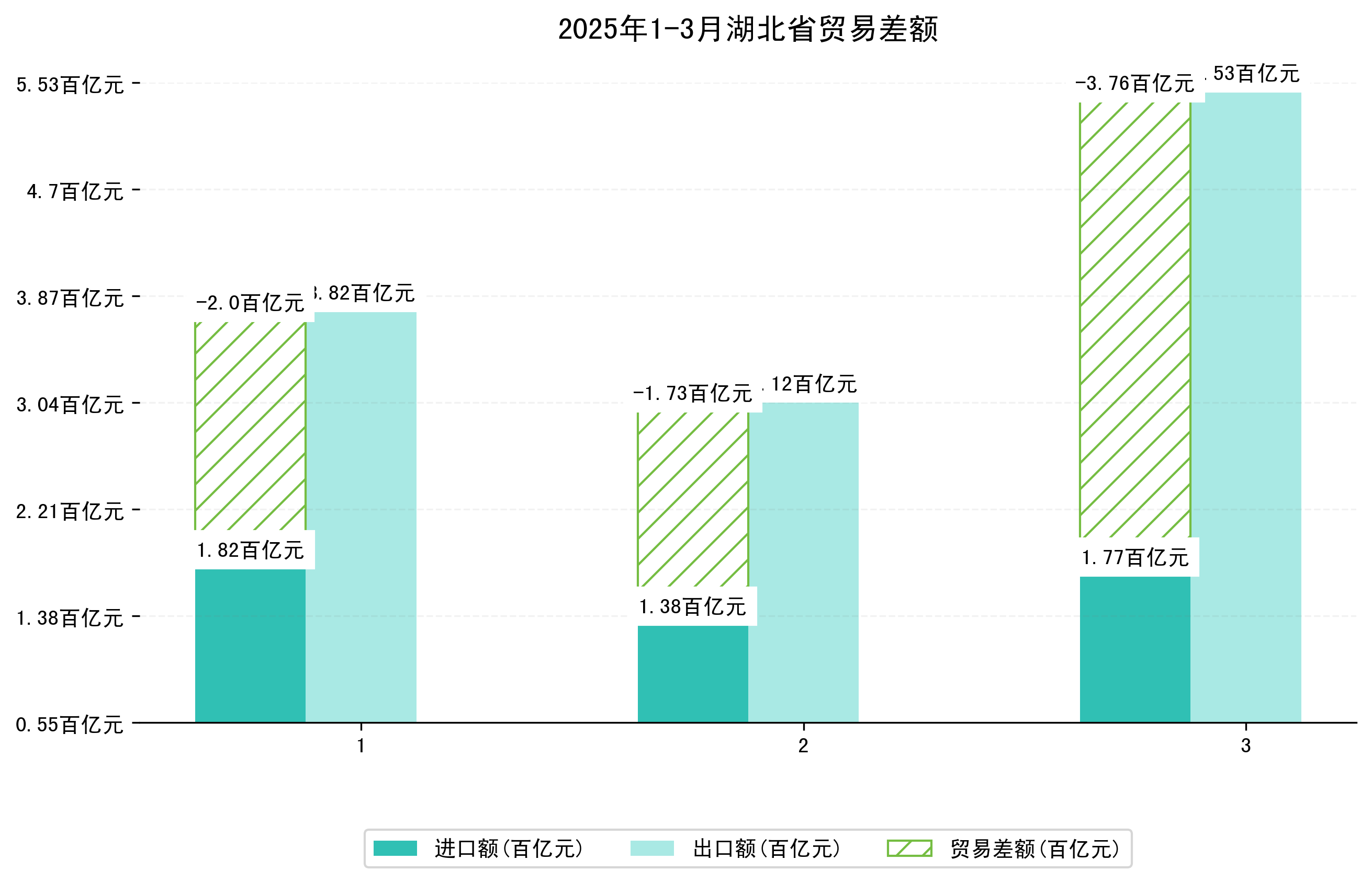 2025年3月湖北省进出口总额及进出口差额统计分析