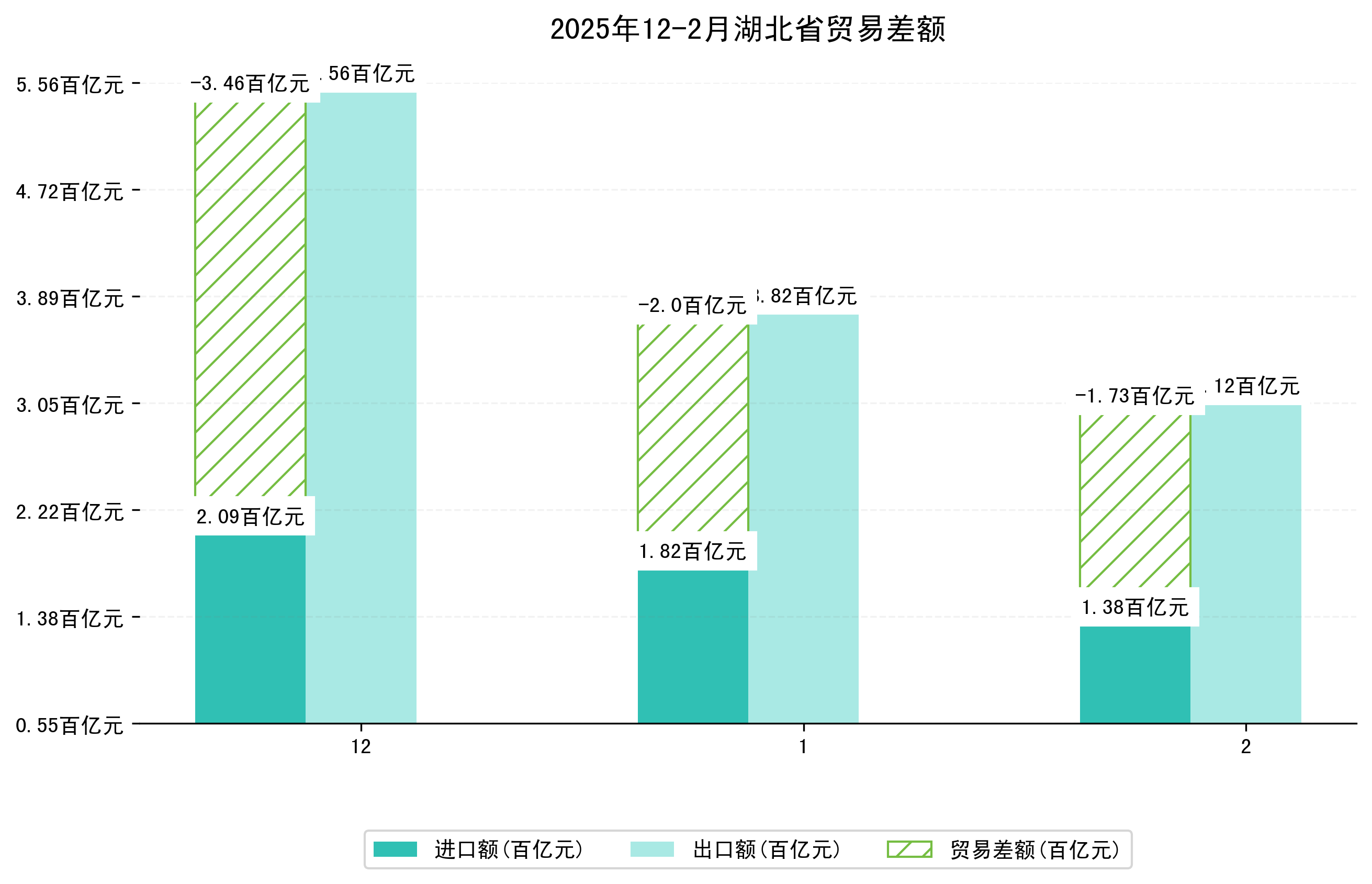 2025年2月湖北省进出口总额及进出口差额统计分析
