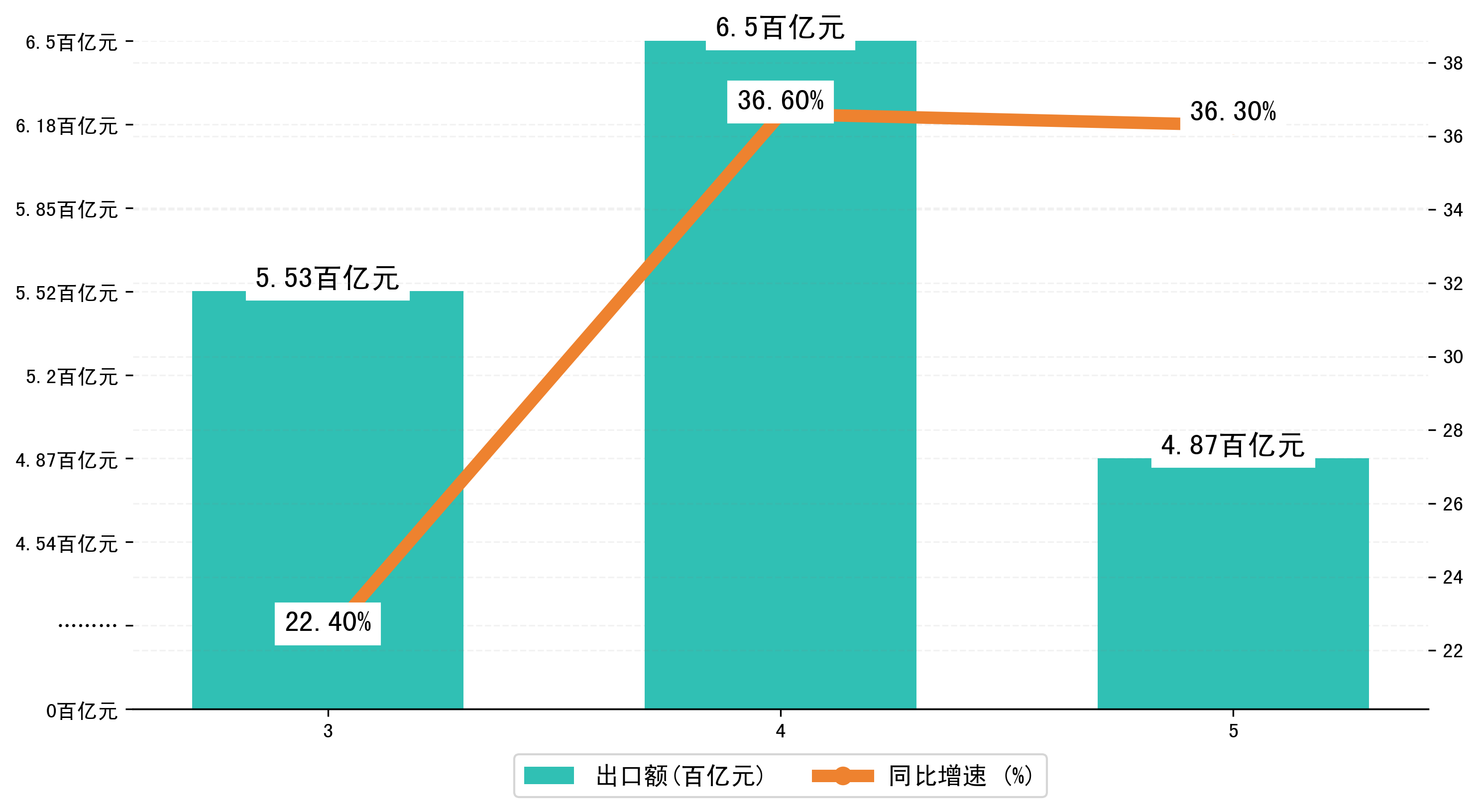 以人民币计,2025年5月湖北省出口额为486,9386.0981万元,相比上月减少了163,5386.1175万元;相比上年同期增加了123,6446.3469万元,同比增加了36.30%。