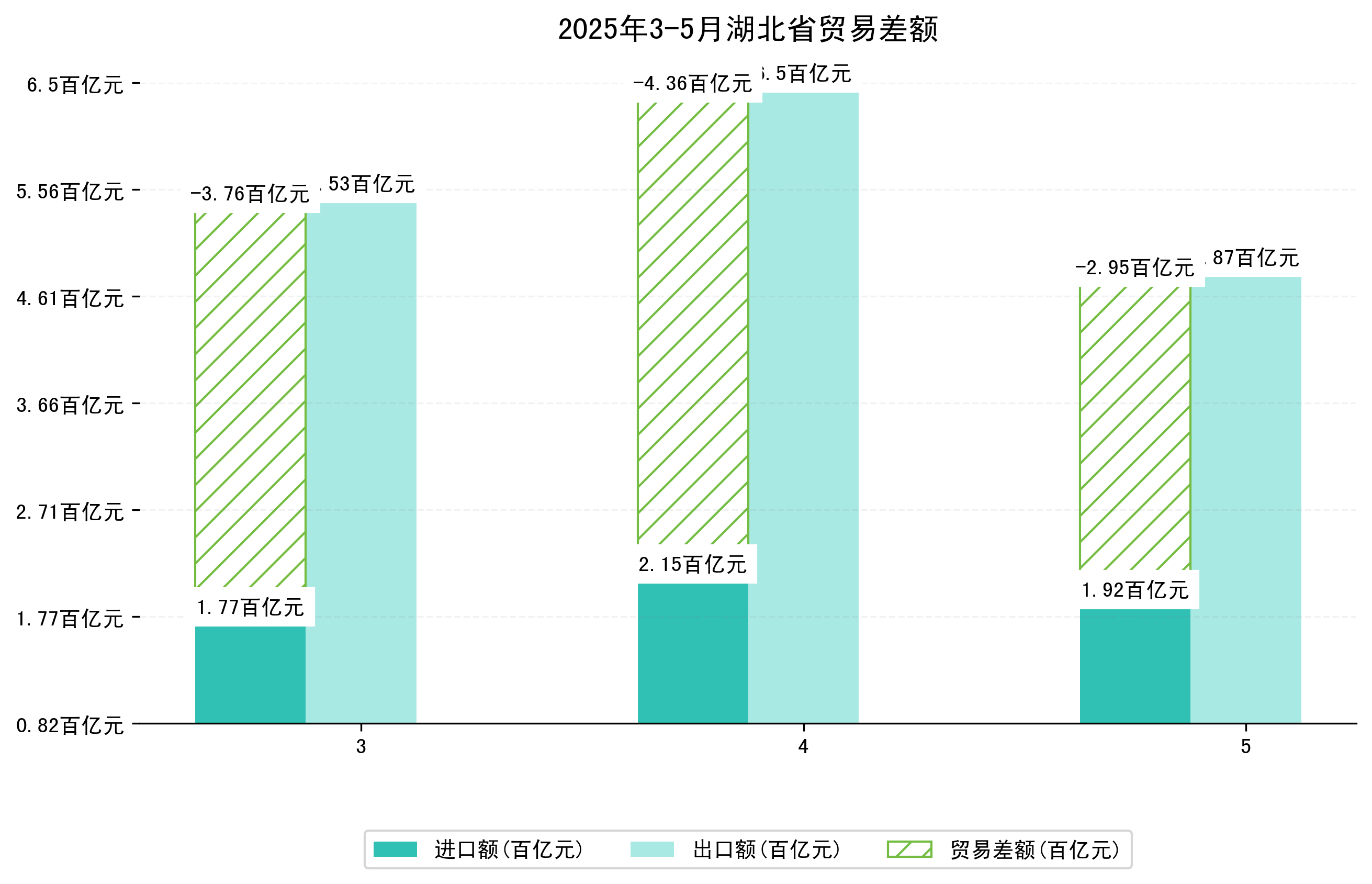 2025年5月湖北省进出口总额及进出口差额统计分析